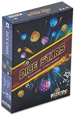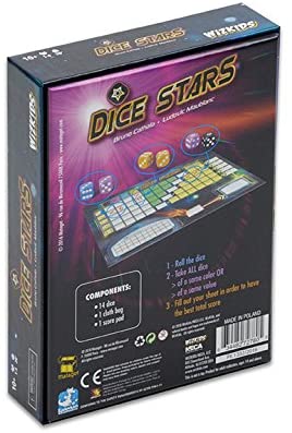 In Dice Stars, the dice are shooting stars that never look the same! You can choose to end the game quickly or take your time, but all your choices will be crucial to multiplying your points and reaching an incredible total! You may need to risk it all if you want to succeed… In more detail, Dice Stars is a short dice game in which you have to make the best decision to score the maximum of points. On your turn, you add a certain number of dice to a dice pool, then take either all dice of the same color or all dice of the same value. These actions let you score points in different ways.