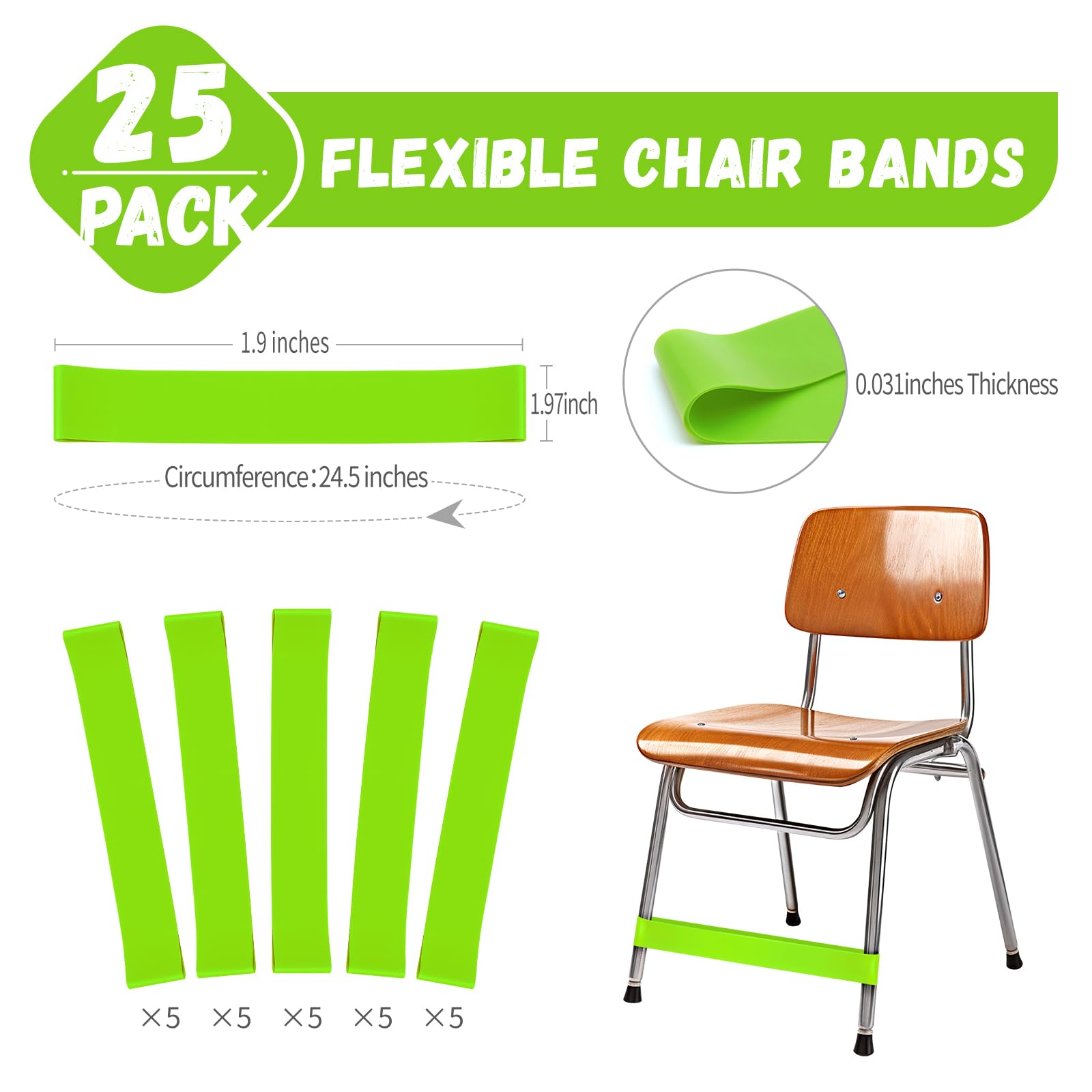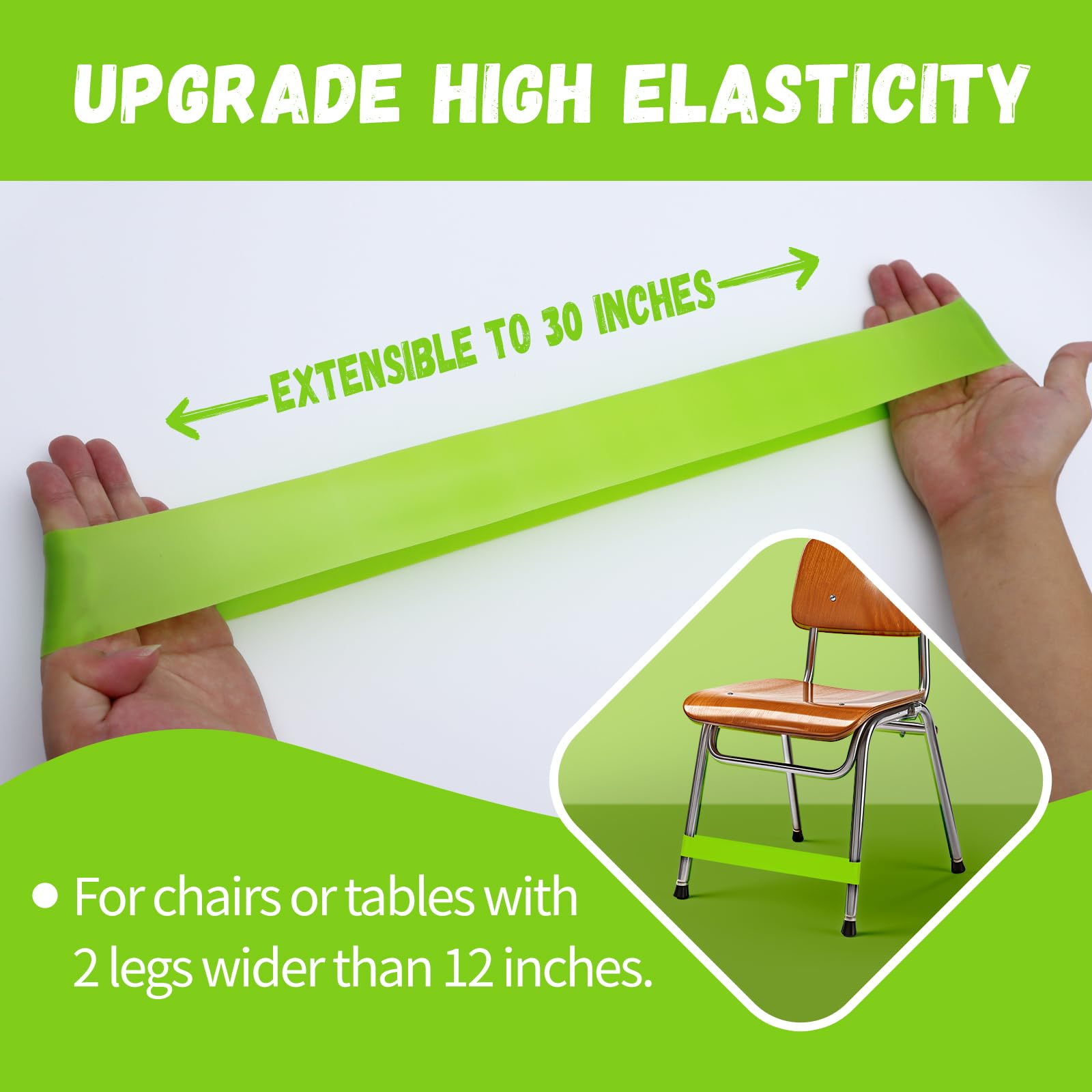 - Easy to Install & Versatile Fit: Stretchable chair bands can be installed in seconds. Simply stretch them over the front two legs of any chair or desk with a width of 12-30 inches. These bands are not only perfect for classrooms, but also ideal for studying or enjoying meals at home. Additionally, they can be used as yoga accessories, beach towel chair bands or exercise resistance bands, making them versatile for various activities