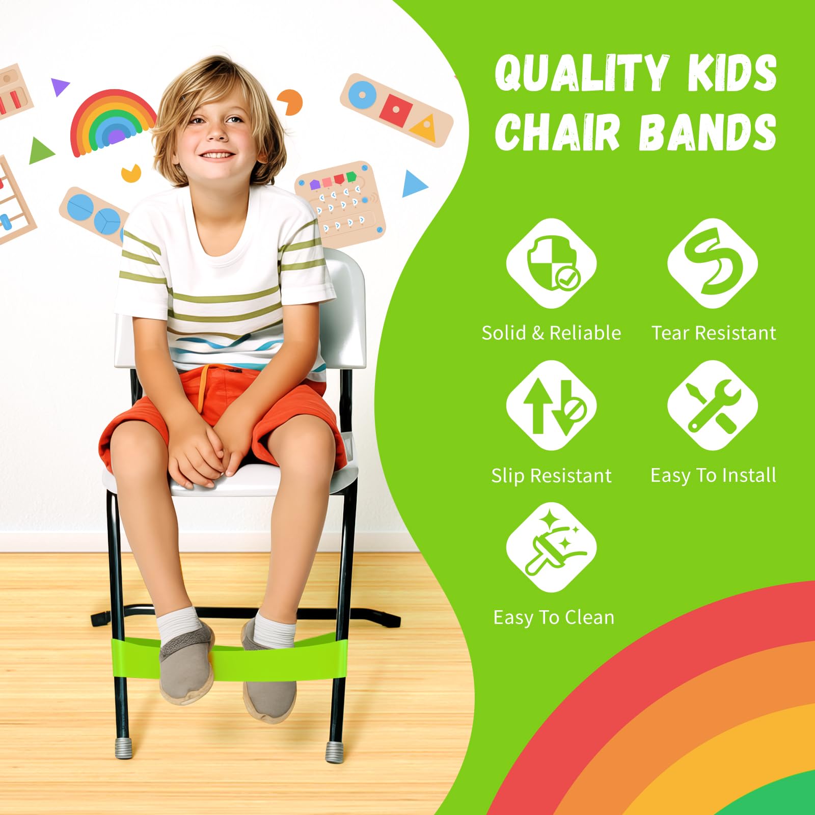 - Reliable & Safe: Made from High-Quality PTE materials, chair bands are built to last. With their strong elasticity and reliable construction, these bands can withstand the fidgeting and movement of children without breaking or slipping. these bands are designed to generate minimal noise, ensuring a peaceful and focused learning environment for kids