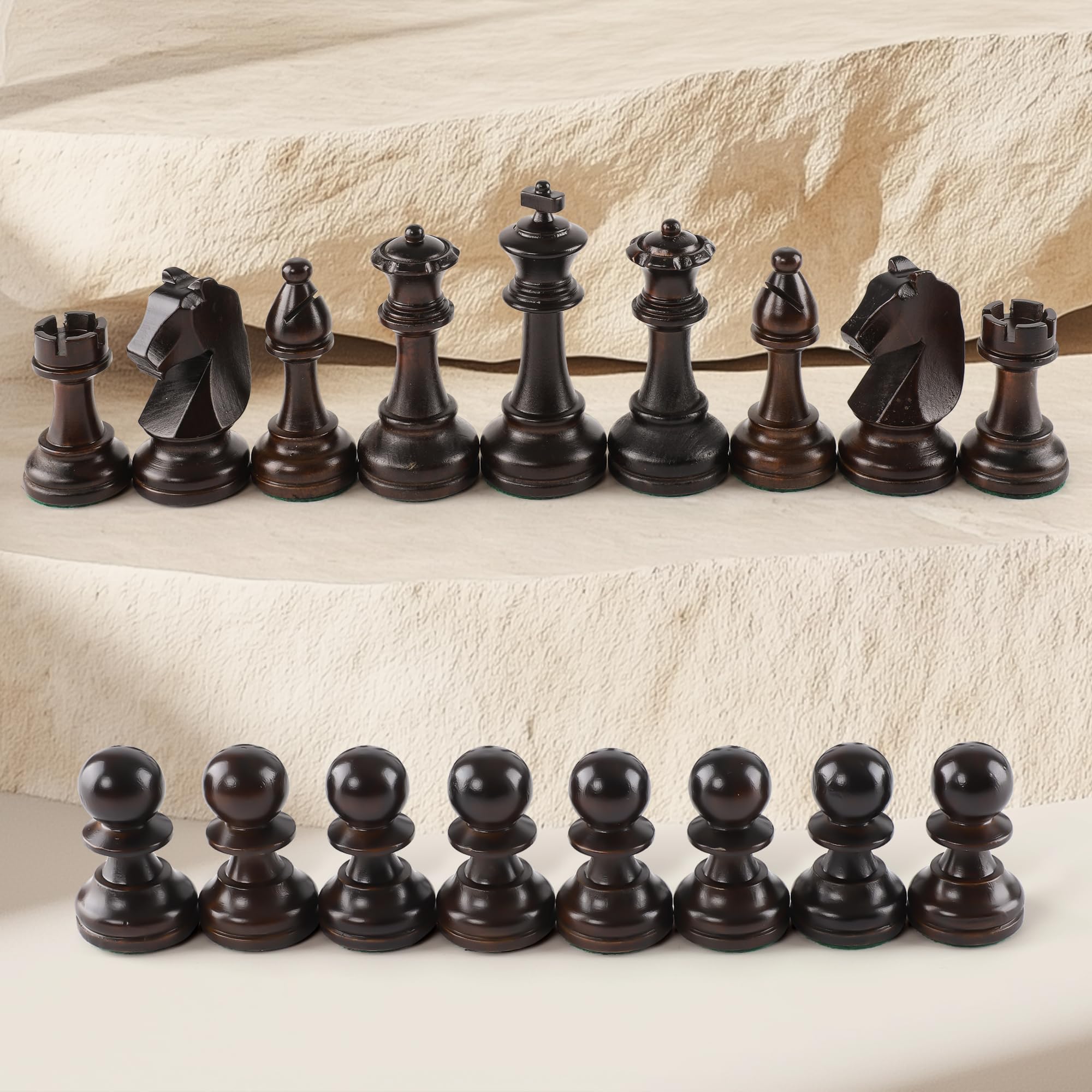 - Generous figure set with 9.5 cm king: this high-quality figure set contains all 32 classic chess pieces in an elegant Staunton shape. The King measures a proud 3.75″ – ideal for serious games at home or club.