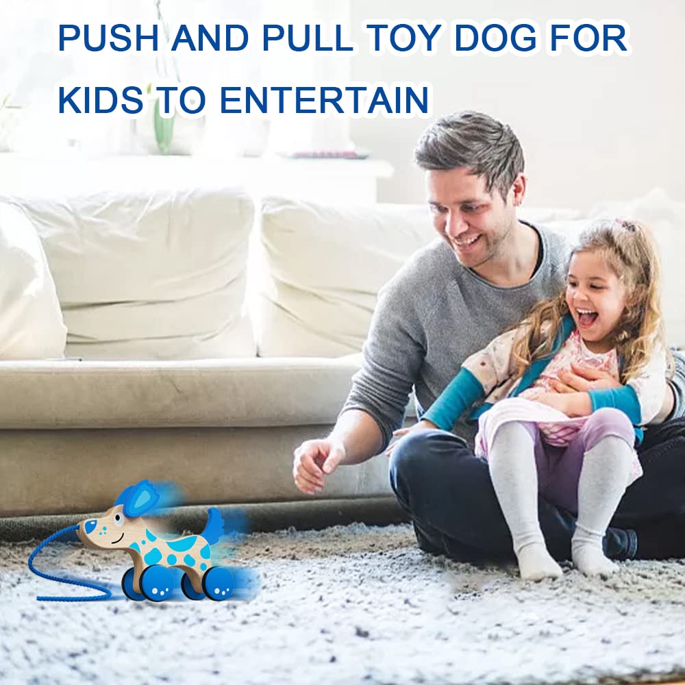 Wooden Pull Dog Toy Wooden Walk Pull Along Toy with String Toy Montessori Toddler Pull Toys for Walking Toddlers