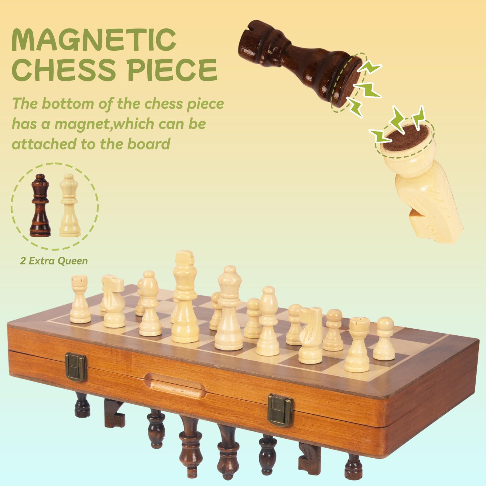 - Safety The chessboard is made of walnut and pine wood, with beautiful texture, strong practicality and durability. The surface of the chess piece is smooth and polished without scratching your hands.
