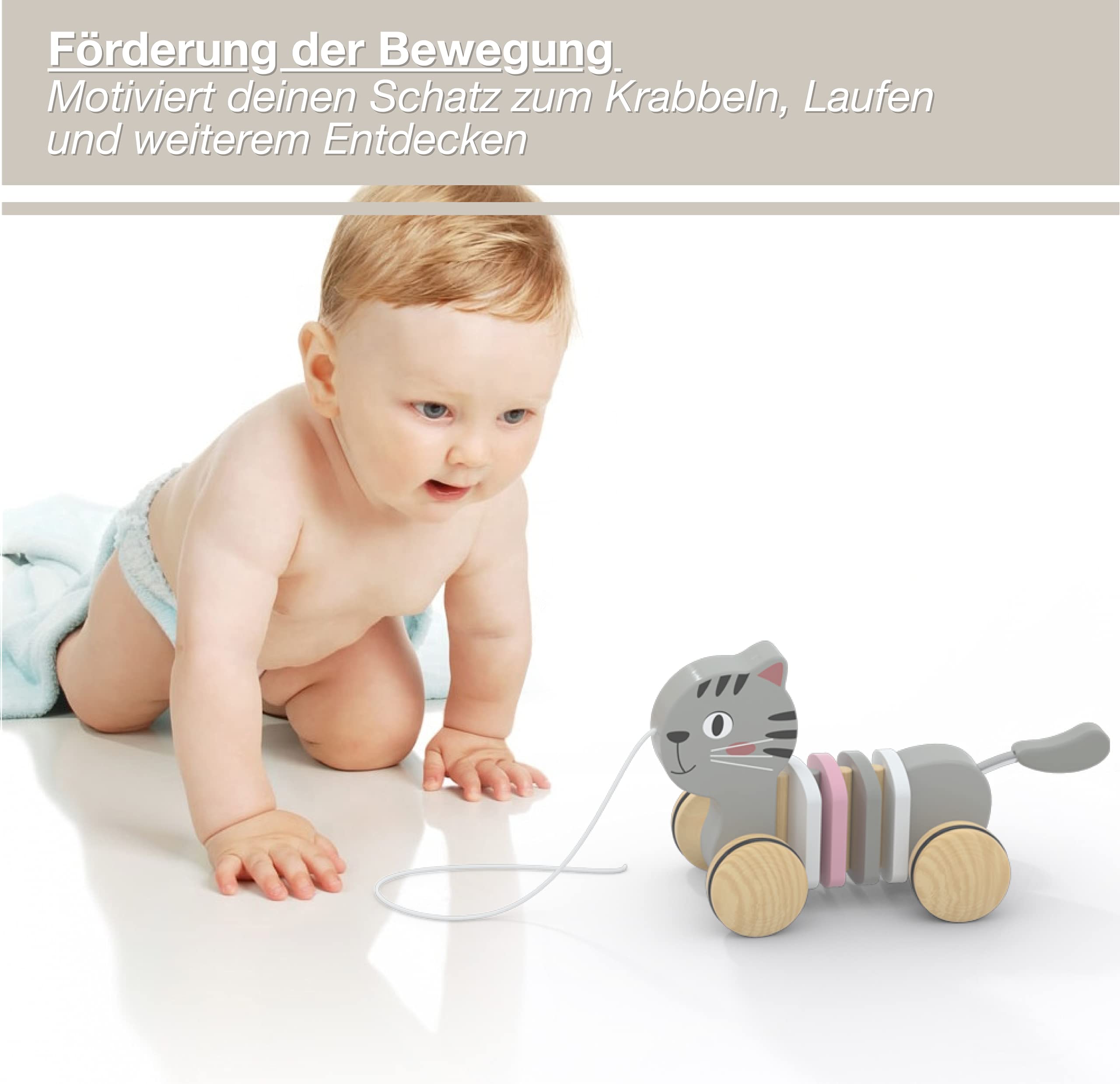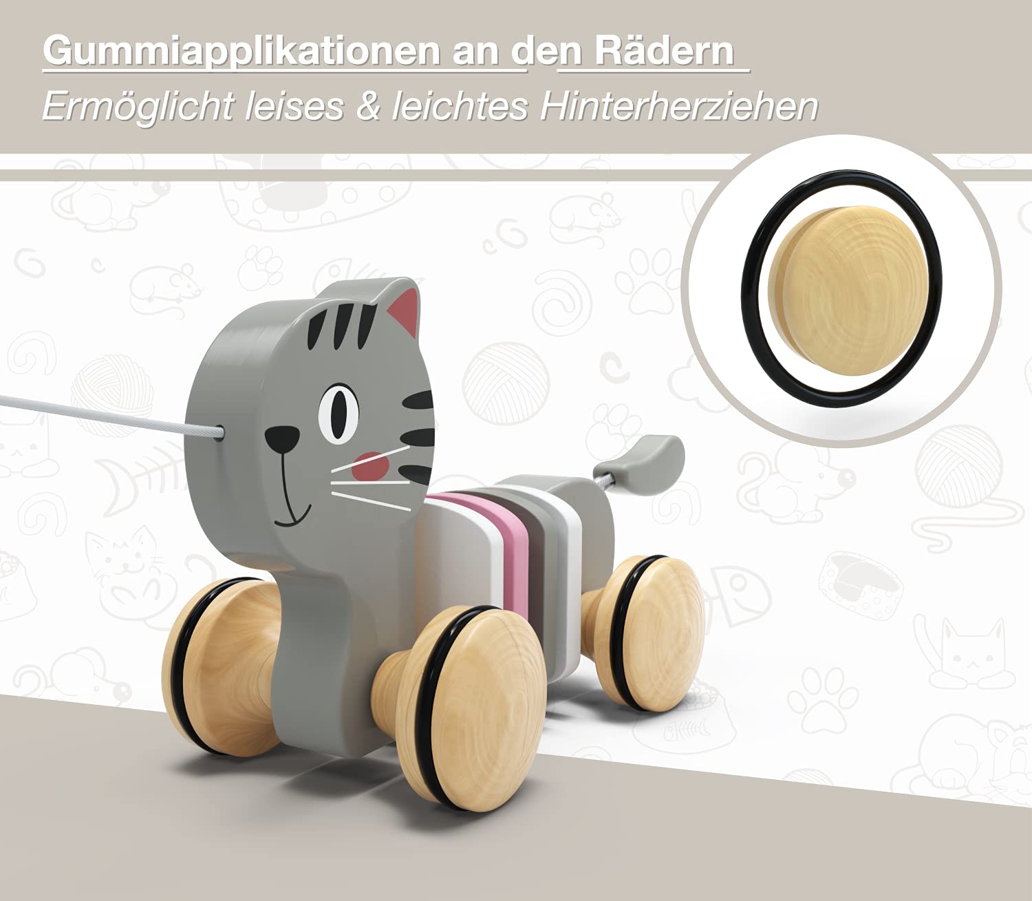 WoodyWood Pull-along Cat, Wooden Pull-Push Toy for Babies & Kids, Ages 1+, Promotes Motor Skills (Grey)