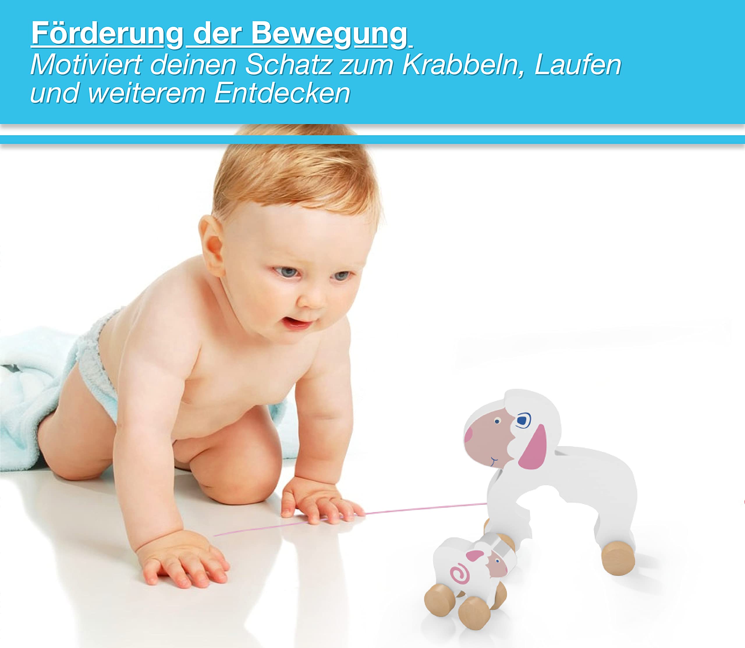 - Sweet charm with the bear in the stomach of the sheep mum there is her little lamb the two can be pulled or pushed at the same time or played separately.