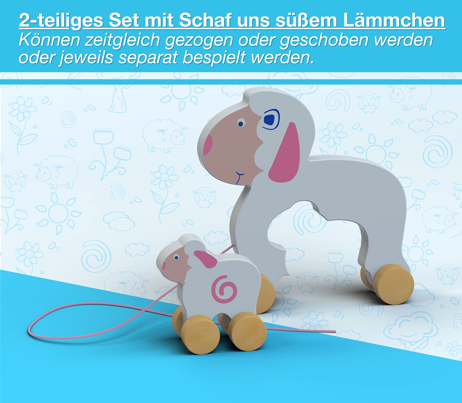 WoodyWood Pull-up Sheep with Lamb, Wooden Pull Toy for Babies & Children, Ages 1+, Promotes Movement & Motor Skills