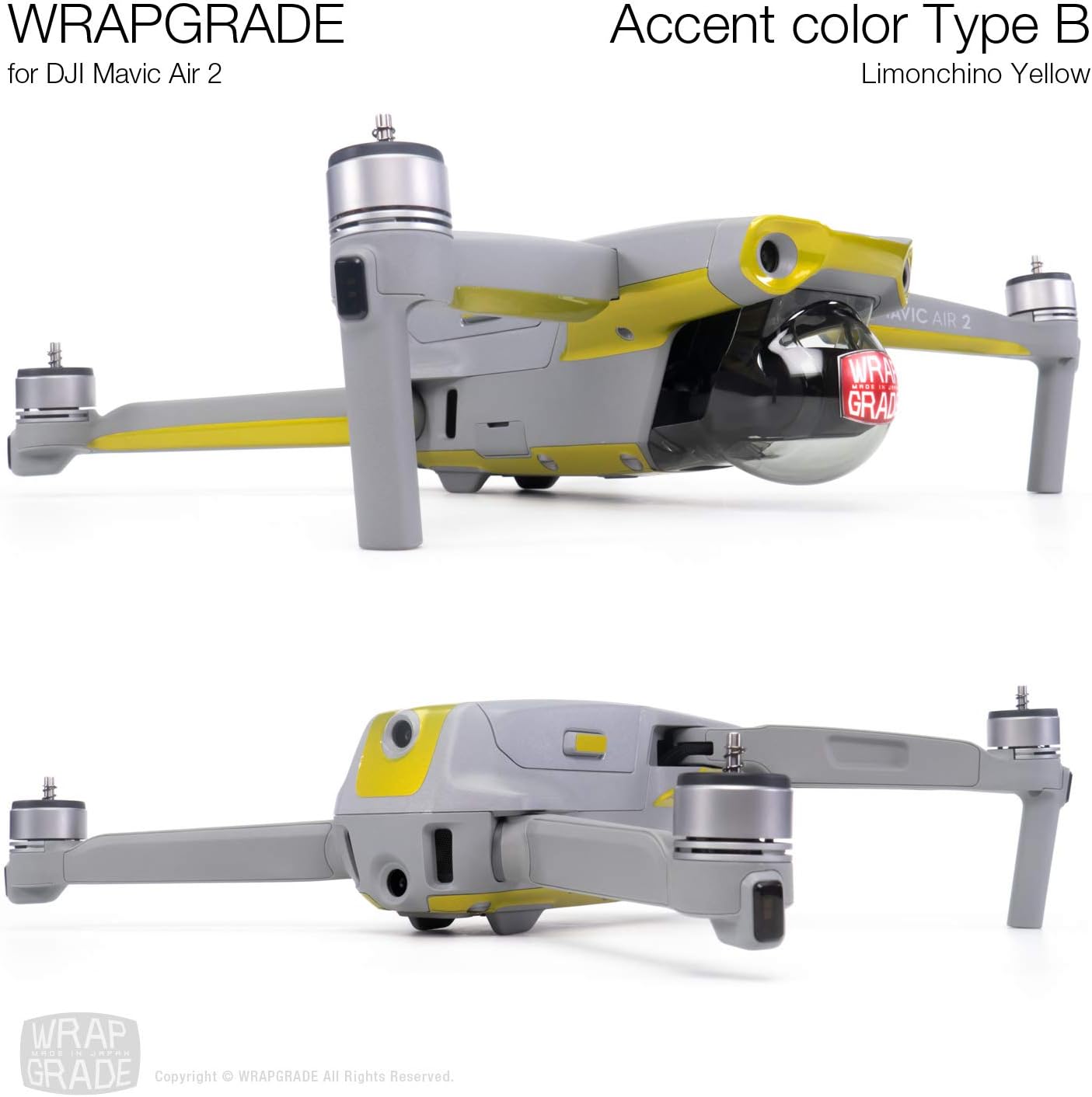Wrapgrade Skin compatible with DJI Mavic Air 2 | Accent Color B (LIMONCINO YELLOW)
