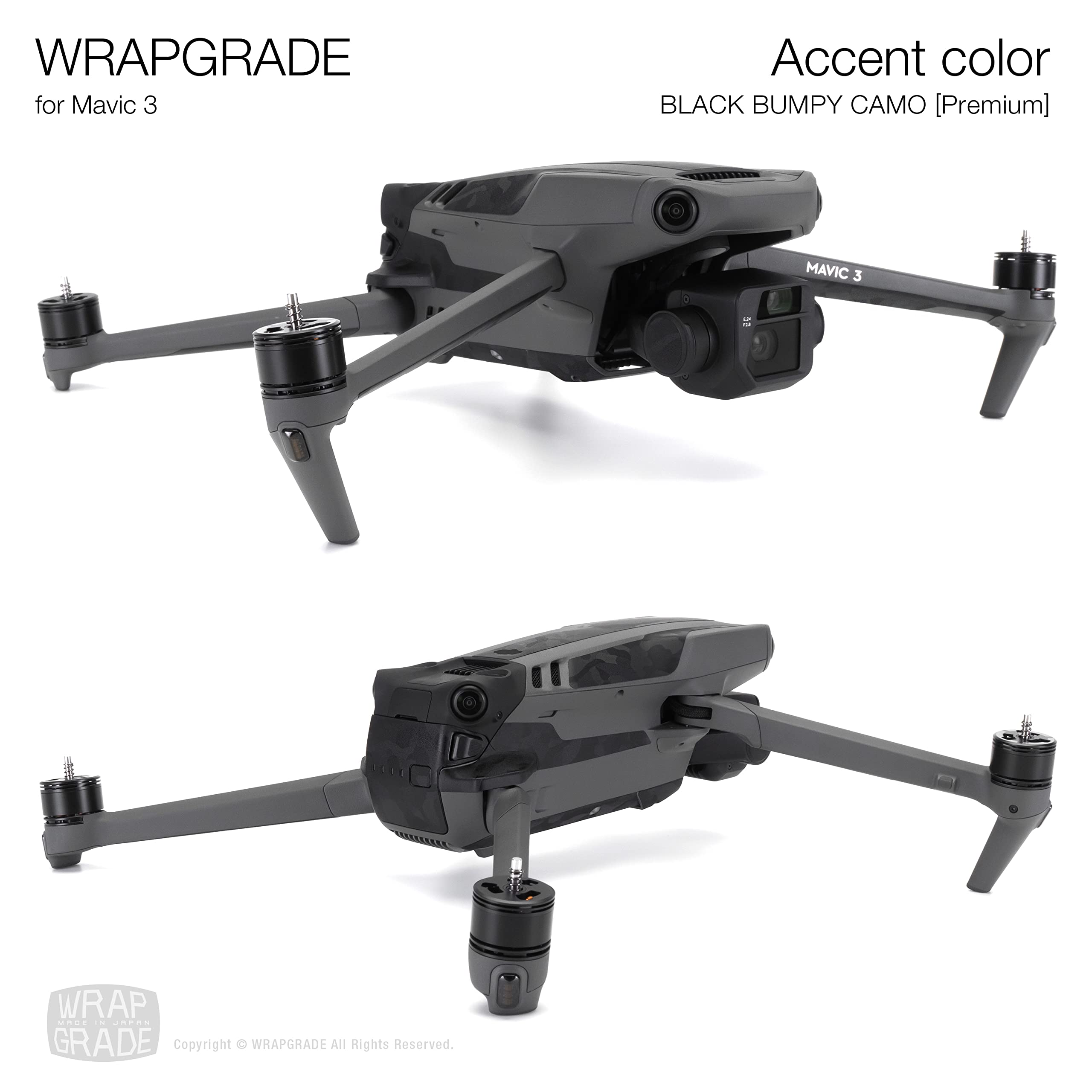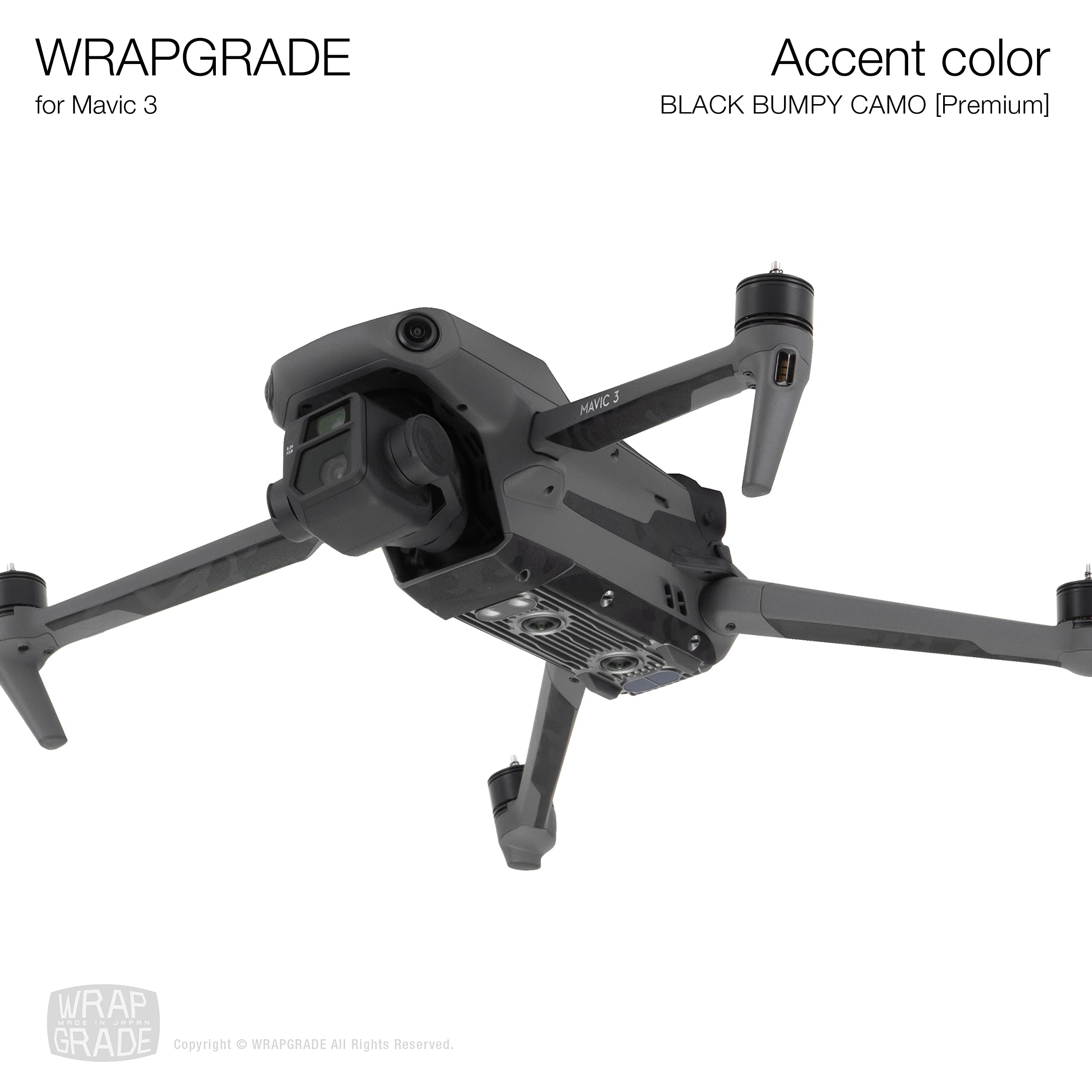 WRAPGRADE Skin Stickers for Mavic 3 Pro/Mavic 3 Classic | Accent Color (BLACK BUMPY CAMO/Pro)
