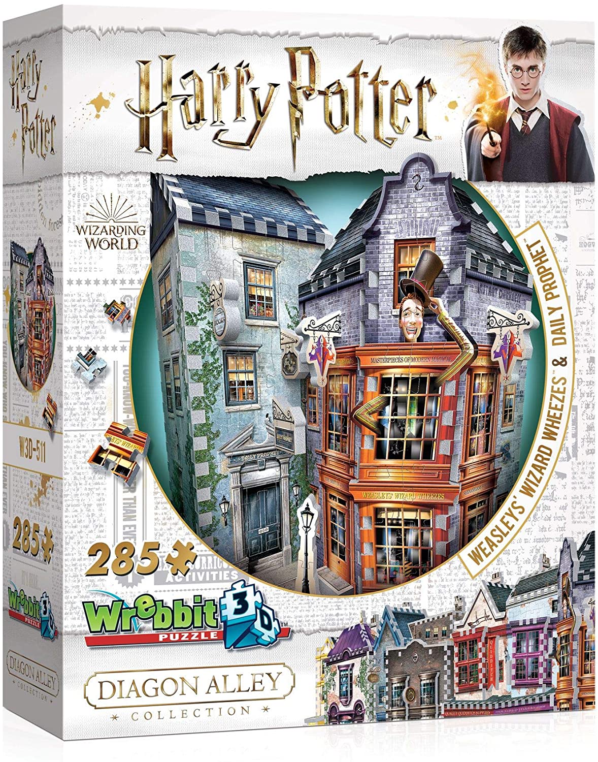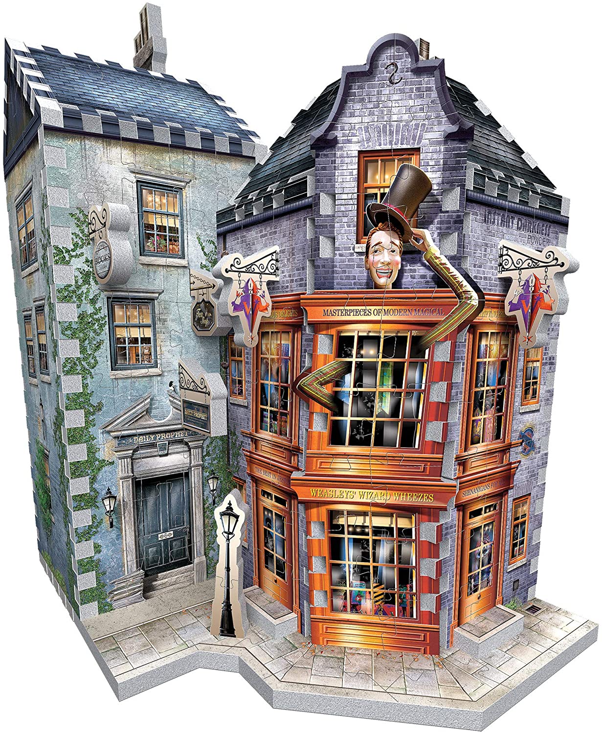 - A stunning 3D replica of Weasleys’ Wizard Wheezes and the Daily Prophet from Diagon Alley