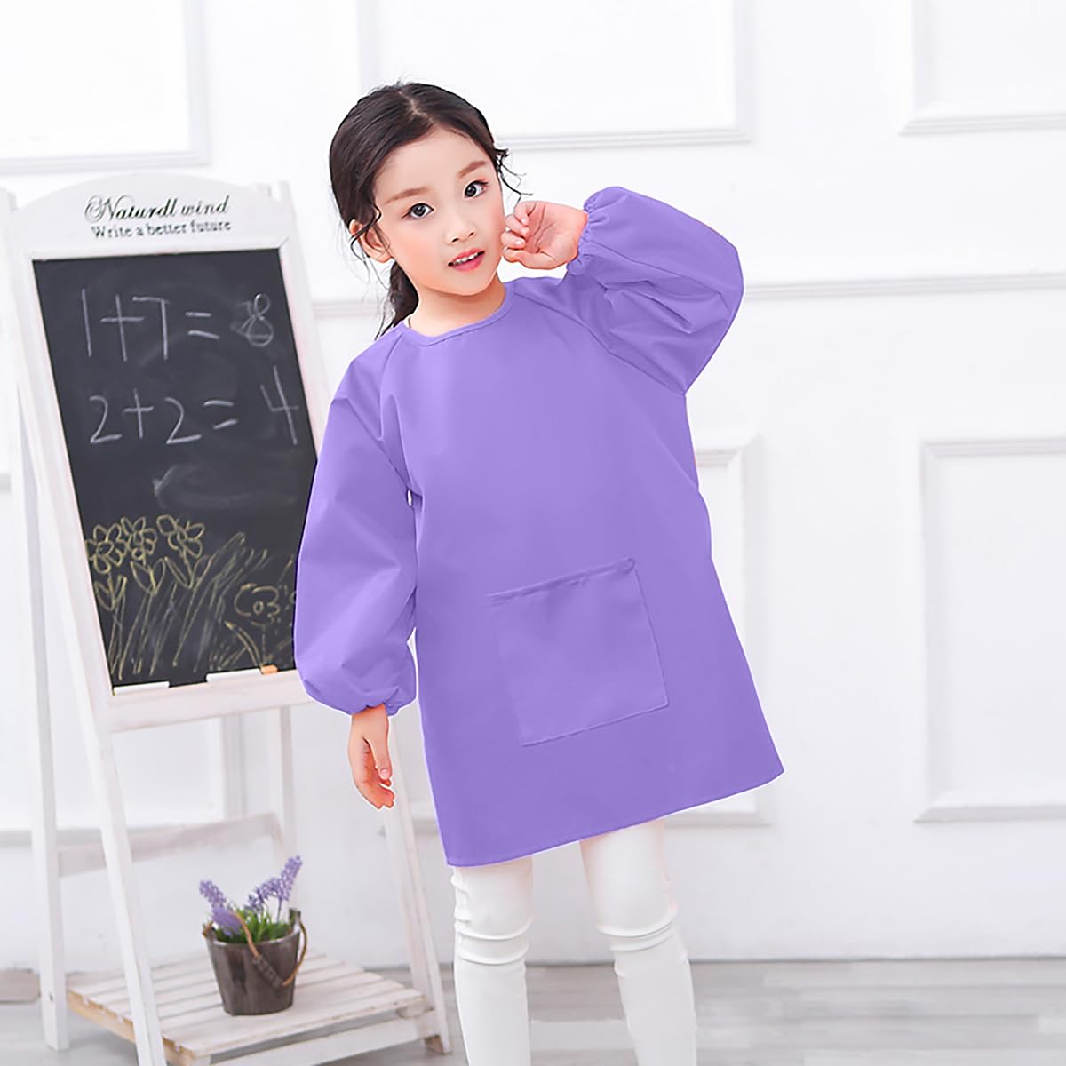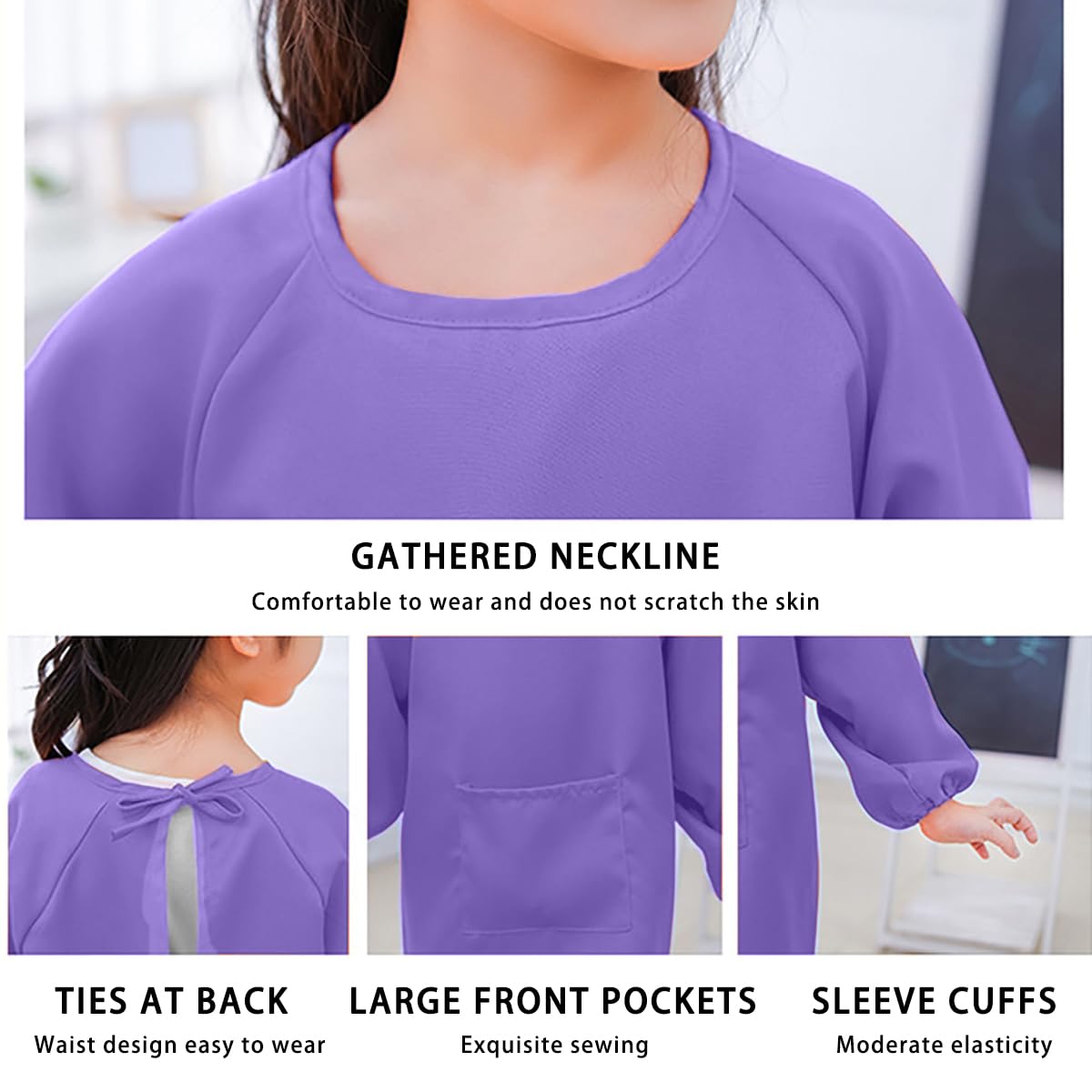 WULIQIUQIU Kids Art Smock, Waterproof Artist Painting Apron Smocks for Children Full Coverage Long Sleeve Smock with Pocket Purple XL