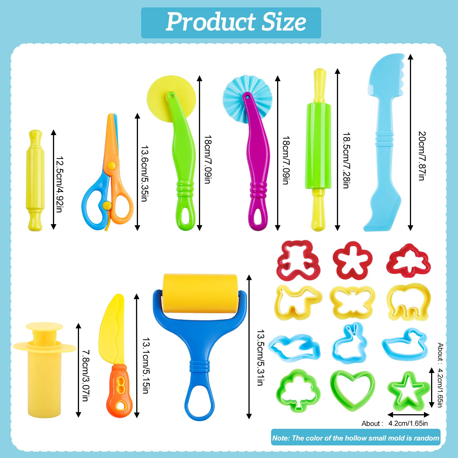 - Playdough Tool Set: Play Dough Tools Sets includes 21 basic dough tools, including plastic scissors and knives, plastic rollers, etc. Used for shaping, molding, and crafting with playdough, clay, plasticine. Note: Only tools, not clay