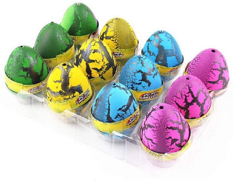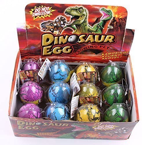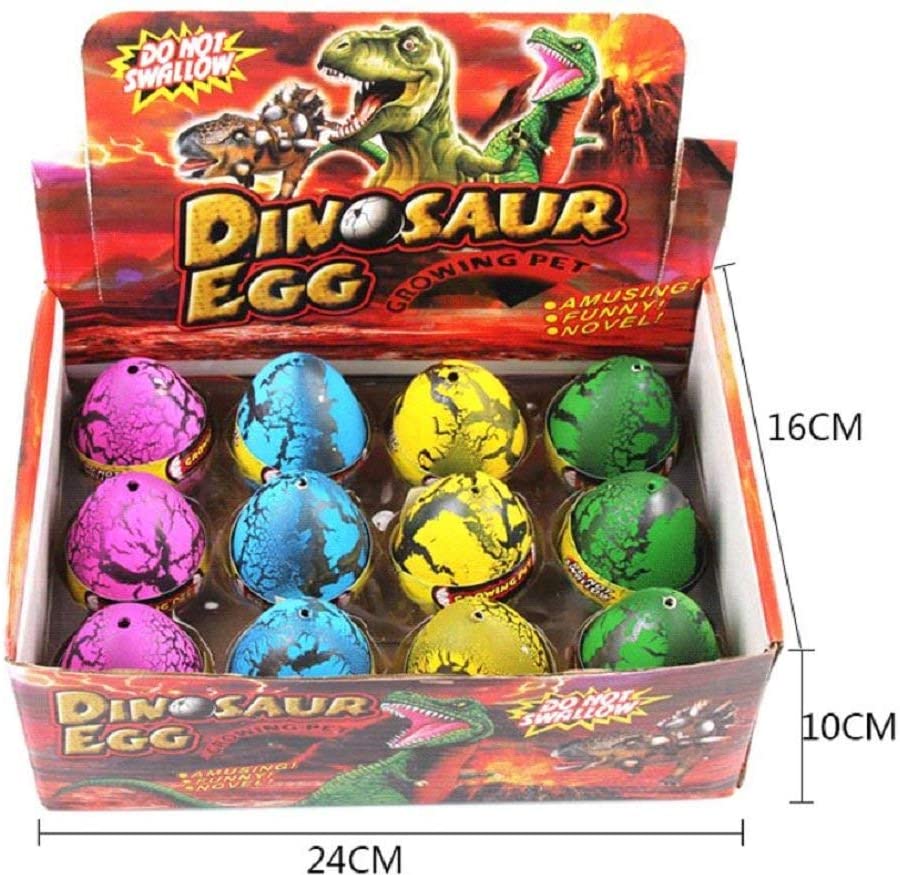 Just put the egg in a Bowl of water(Water temperature below 36 degrees) and watch it hatch out of its egg and grow!Takes 12-24 hours for the dino to break thru the shell.(Don’t forget to add water)After that the dino can grow even more!Baby Size: 5cm * 7cm4 different colors of the shell. 12 dinosaur eggst 9 different dinosaur species. There are 3-4 models of dinosaurs will be repeated Lest dragon egg comes with detailed instructions for use. Perfect Gift for your child.