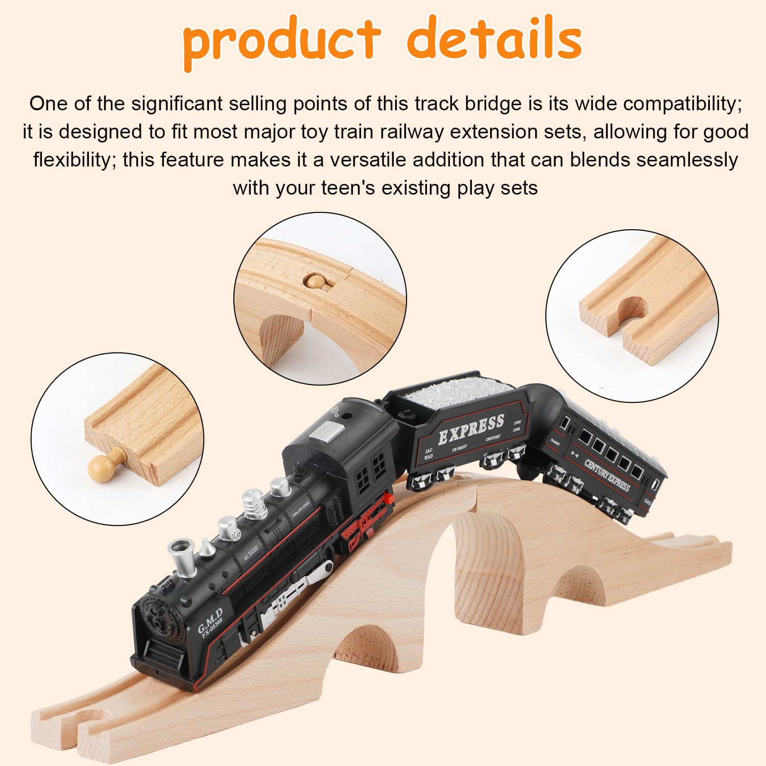 - XIHIRCD Wooden Train Bridge, Wooden Train Track Accessories Solid Wood Train Track Expansion Three-Hole Train Track Pieces Train Tracks Wooden Toy for Most Major Toy Trains Railway Girls & Boys