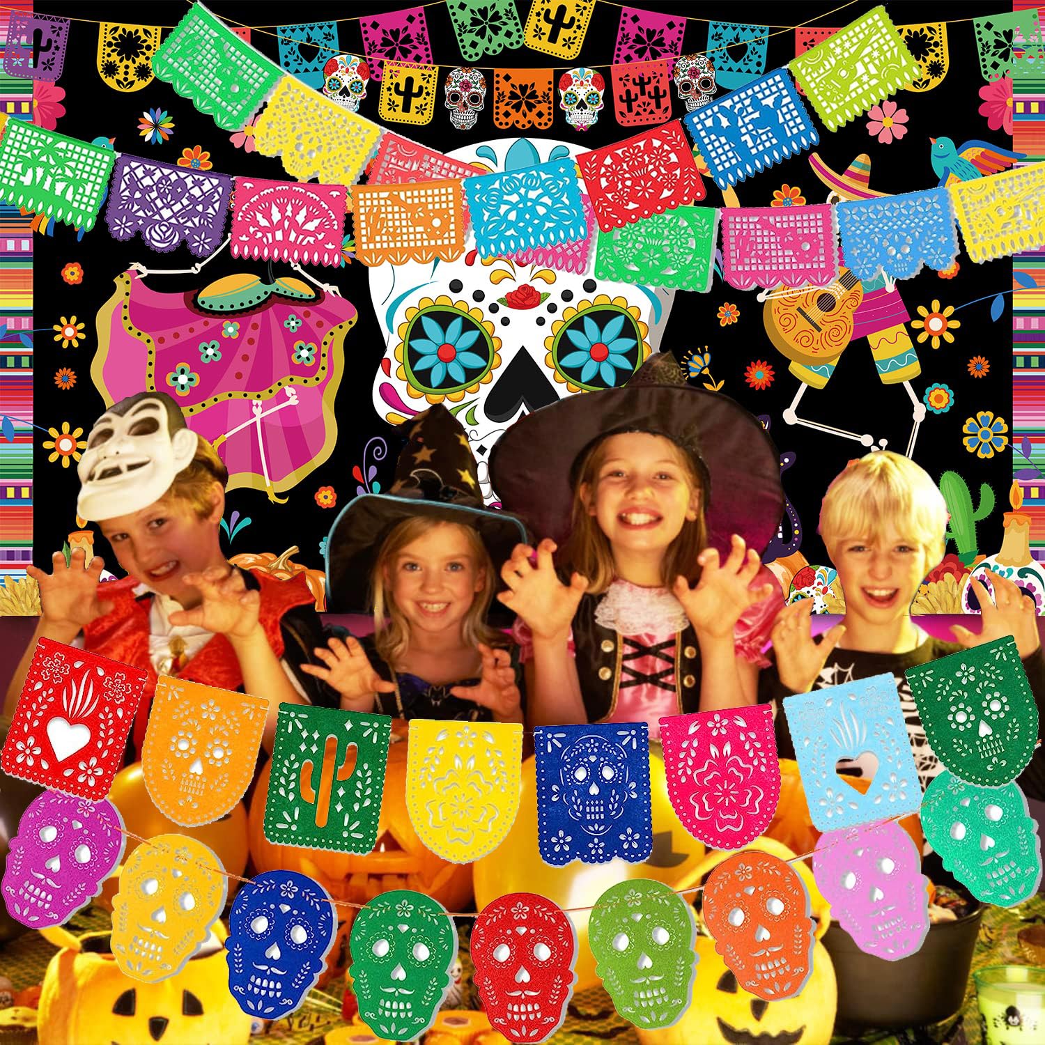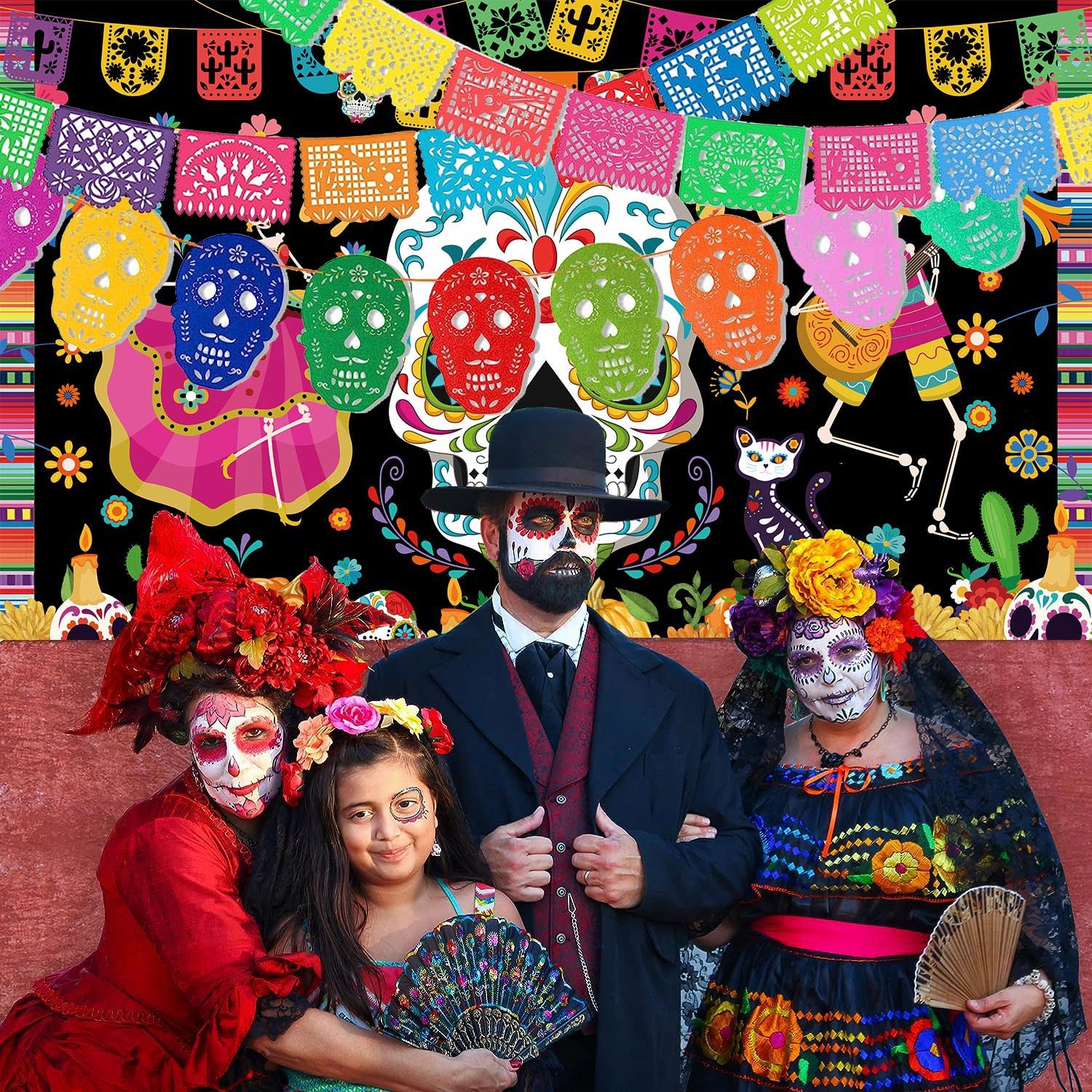 Mexican Theme Parties: These Day of the Dead Banner Dia De Los Muertos Skull Garland are suitable for many occasions, such as Mexican theme parties, Un Dia de Memoria, birthdays, weddings, fiestas, Dia de los Muertos, Day of the Dead, Cinco de Mayo, decoration, Mexico, horror party, Day of the Dead, Halloween party and theme party.