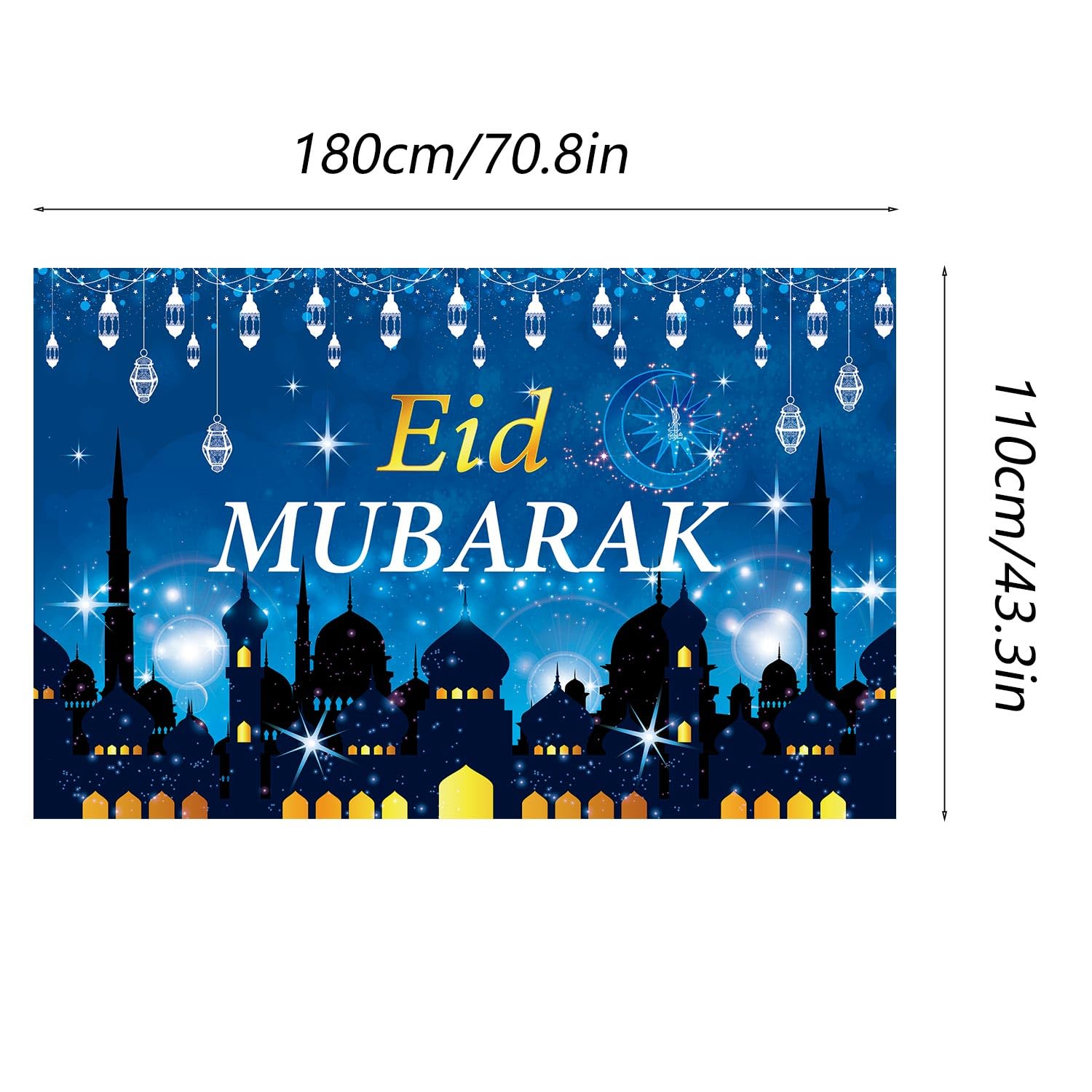 – The Eid Mubarak backdrop banner size is 180*110cm / 72*43 inch. large size to decor your home, wall, office, garden.