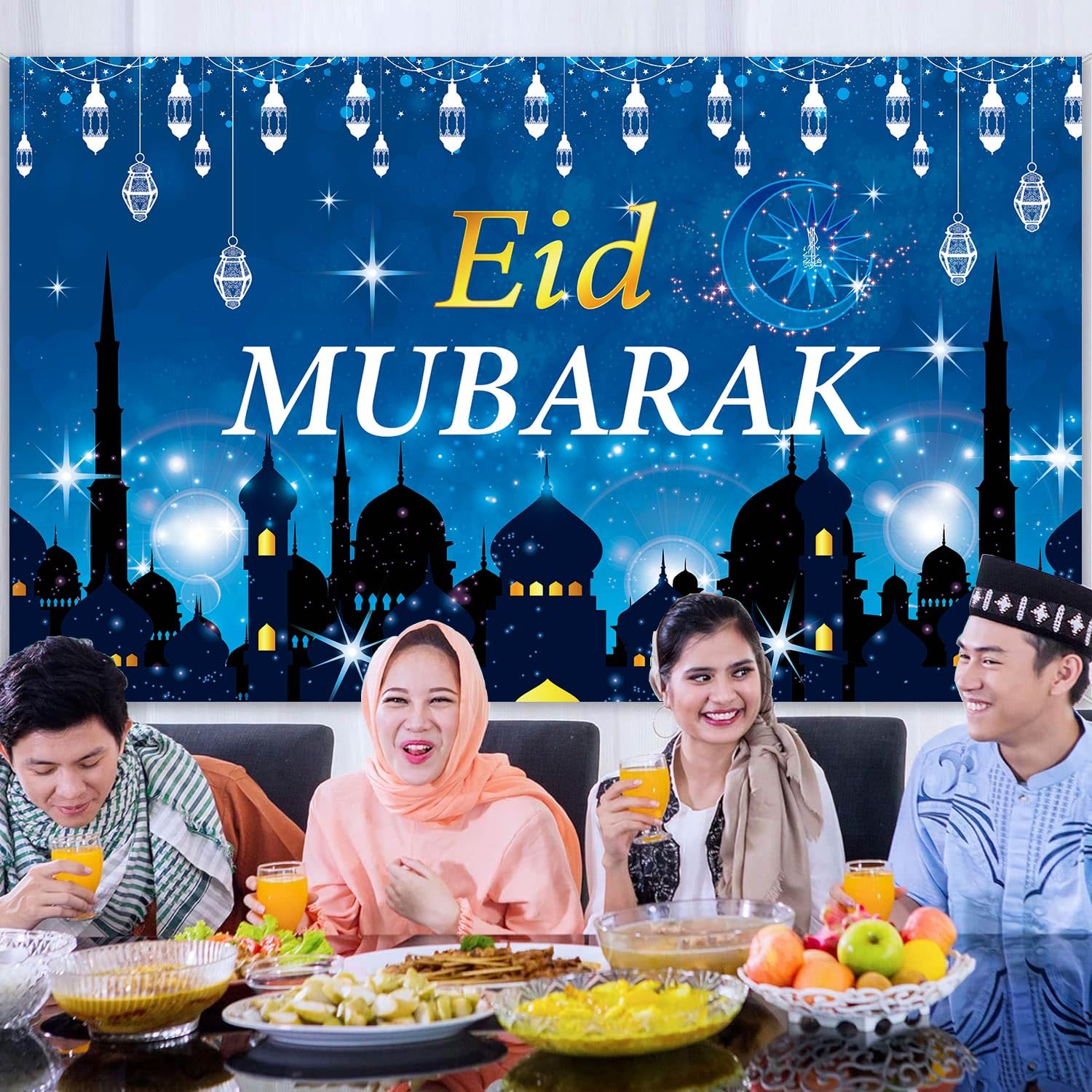 – This Eid Mubarak banner Eid backdrop is made of durable Polyester material, which is washable, waterproof, and light weight. And can be used year by year.