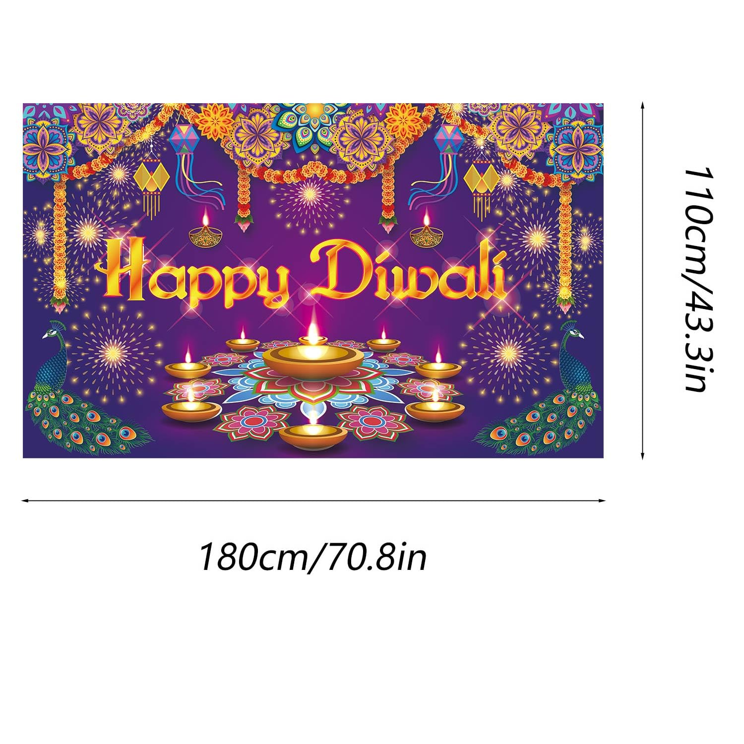– The Diwali backdrop banner size is 180*110cm / 72*43 inch. large size to decor your home, wall, office, garden.
