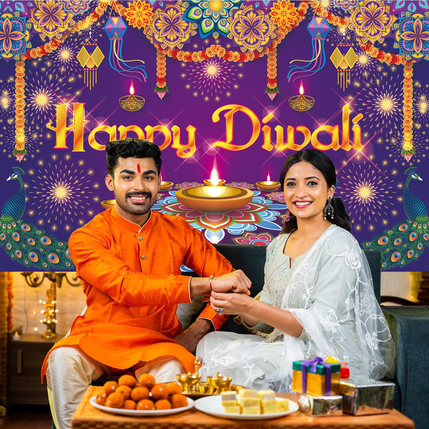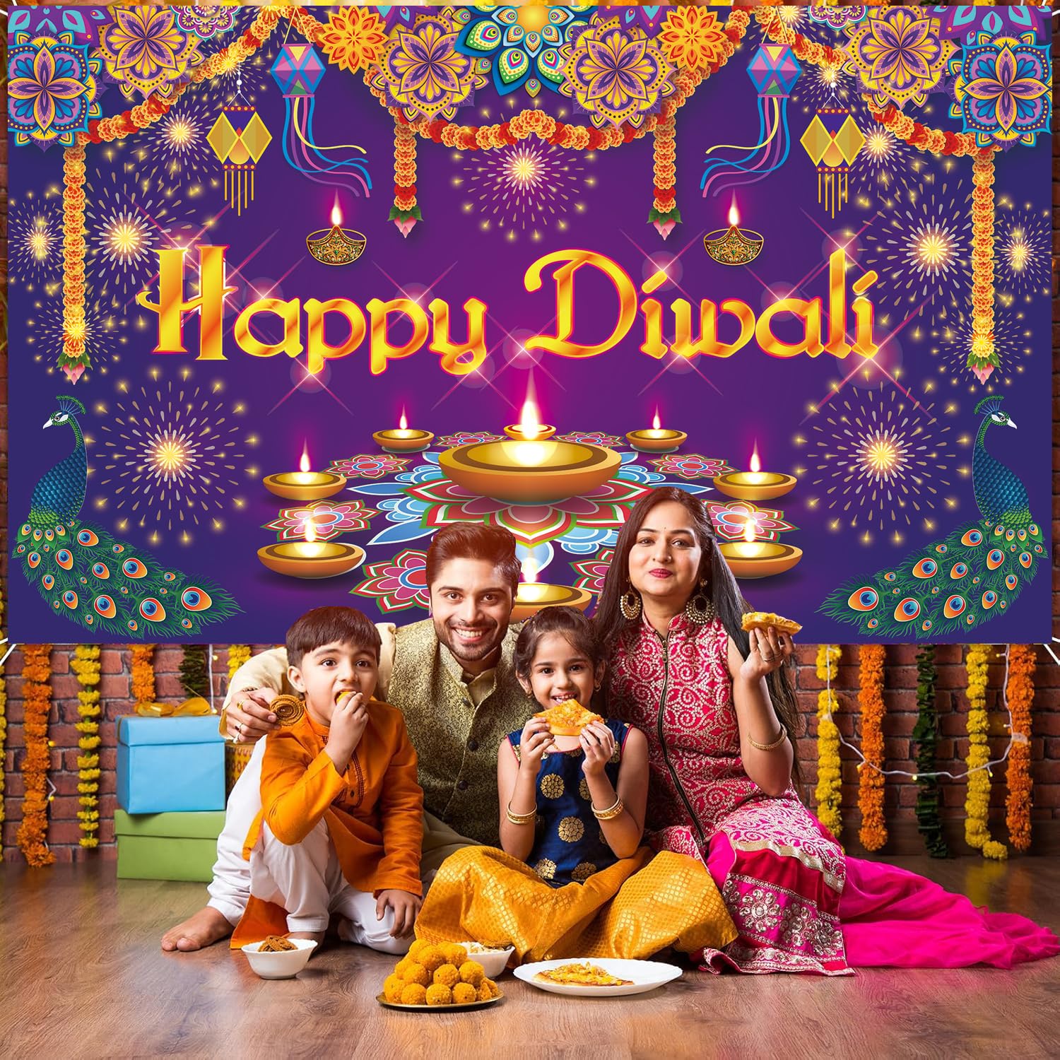 – This Happy Diwali banner Diwali backdrop is made of durable Polyester material, which is washable, waterproof, and light weight. And can be used year by year.