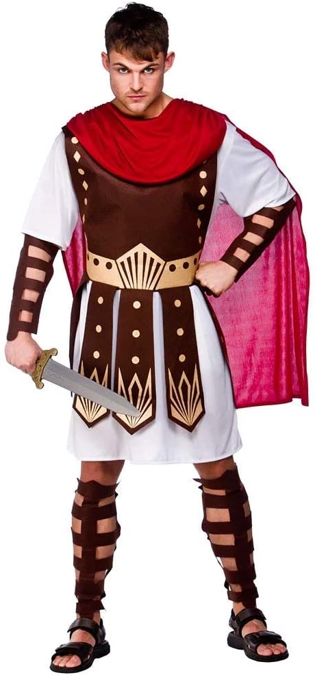 Roman Centurion Costume Costume includes : White Tunic Tabard with Attached Cape Leg and Arm Guards XL 46″ – 48″ Chest