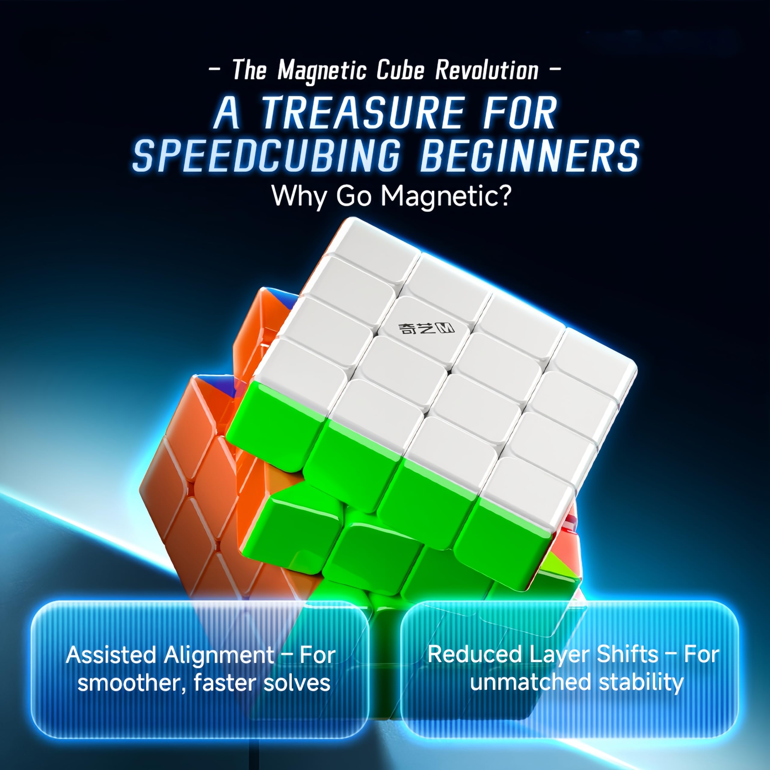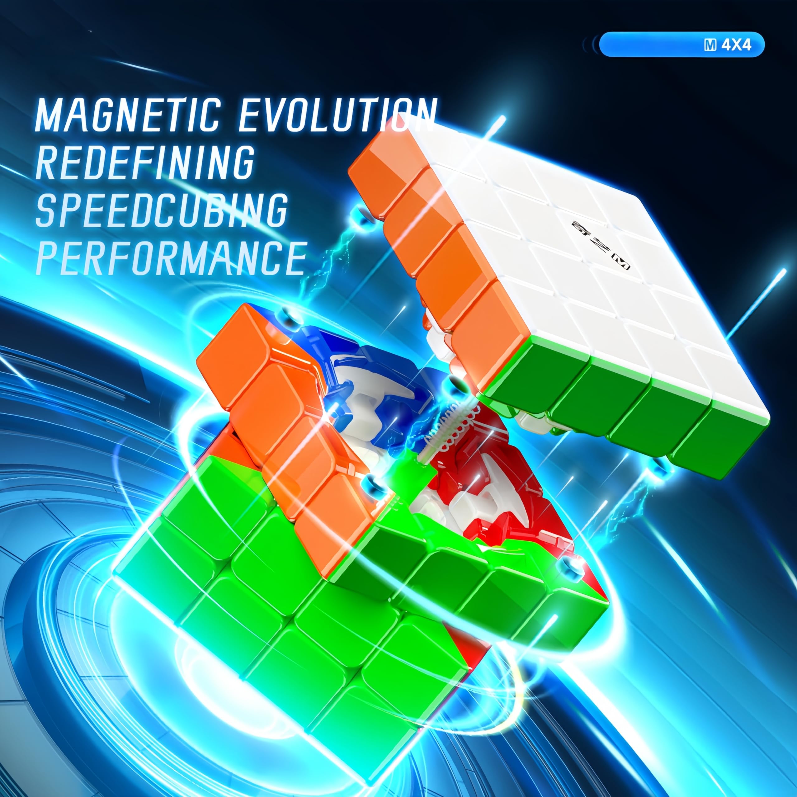 This 4×4 cube features a vibrant stickerless design with six bright permanent colors that maintain their clarity through extended use. Measuring 59mm in size and weighing 108.1 grams, it offers the perfect balance of compact form and comfortable weight. The innovative dual rounded-corner design (both inner and outer layers) ensures exceptional stability during solves, while its high misalignment tolerance allows for smooth corner-cutting and effortless turning motions