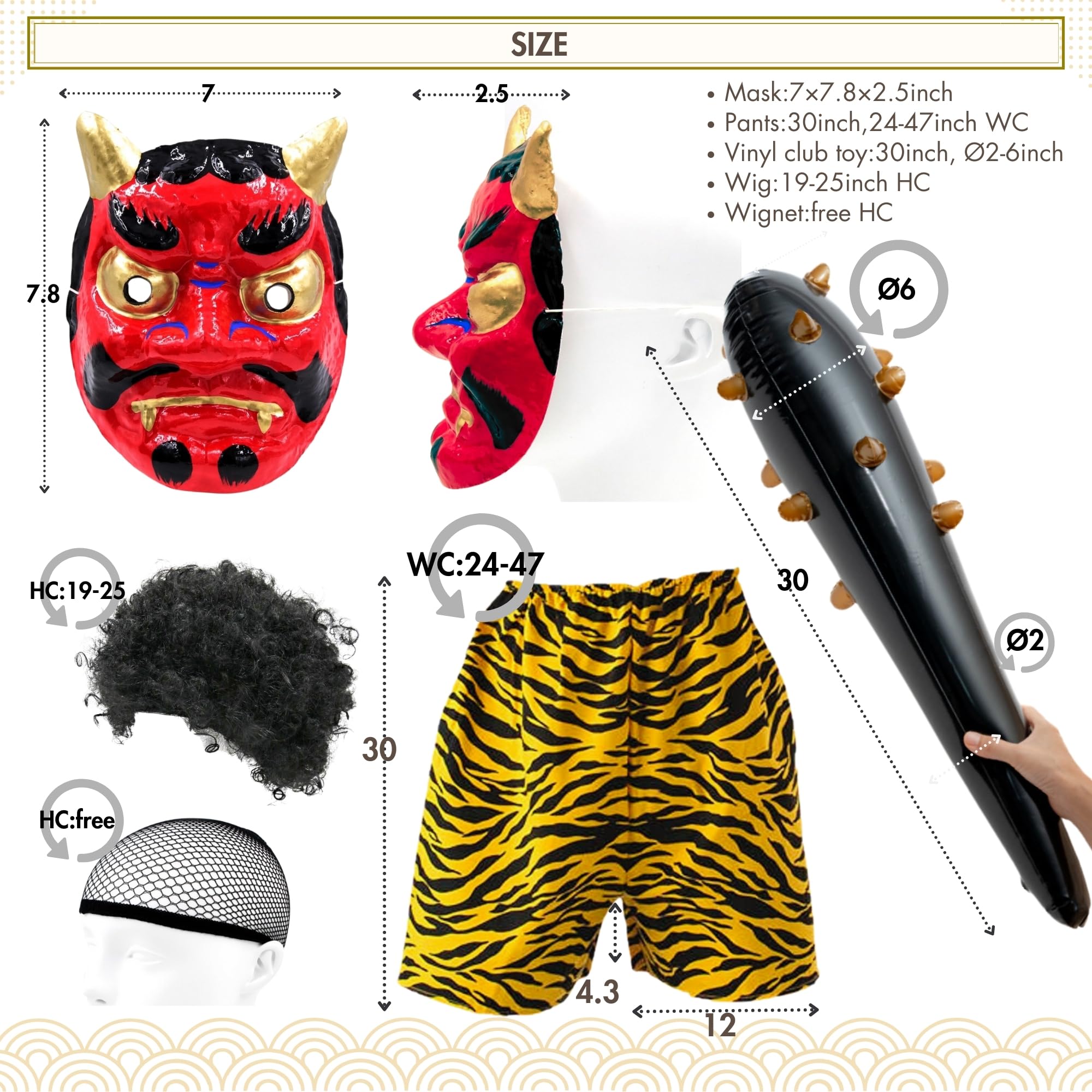 - (Set Contents:) Paper mache oni maskWigWig netTiger pattern pantsClub-shapedair vinyl toy