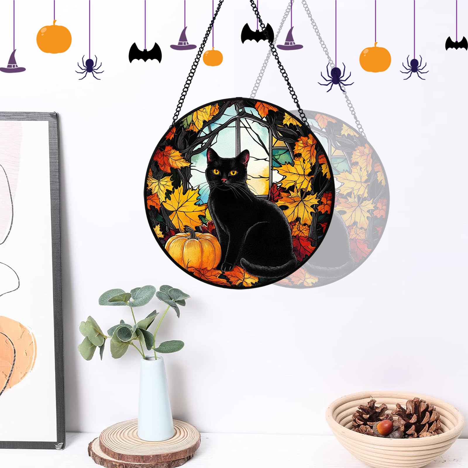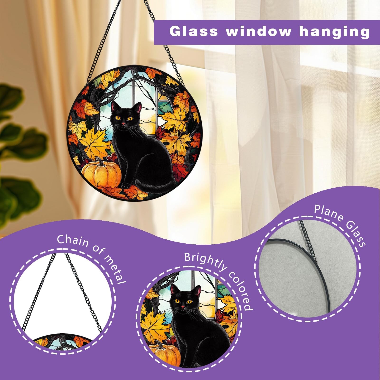 - Black Cat Sun Catcher: Each black cat decor is meticulously crafted with high-quality stained glass, ensuring a vibrant and long-lasting black cat sun catcher for your indoor window