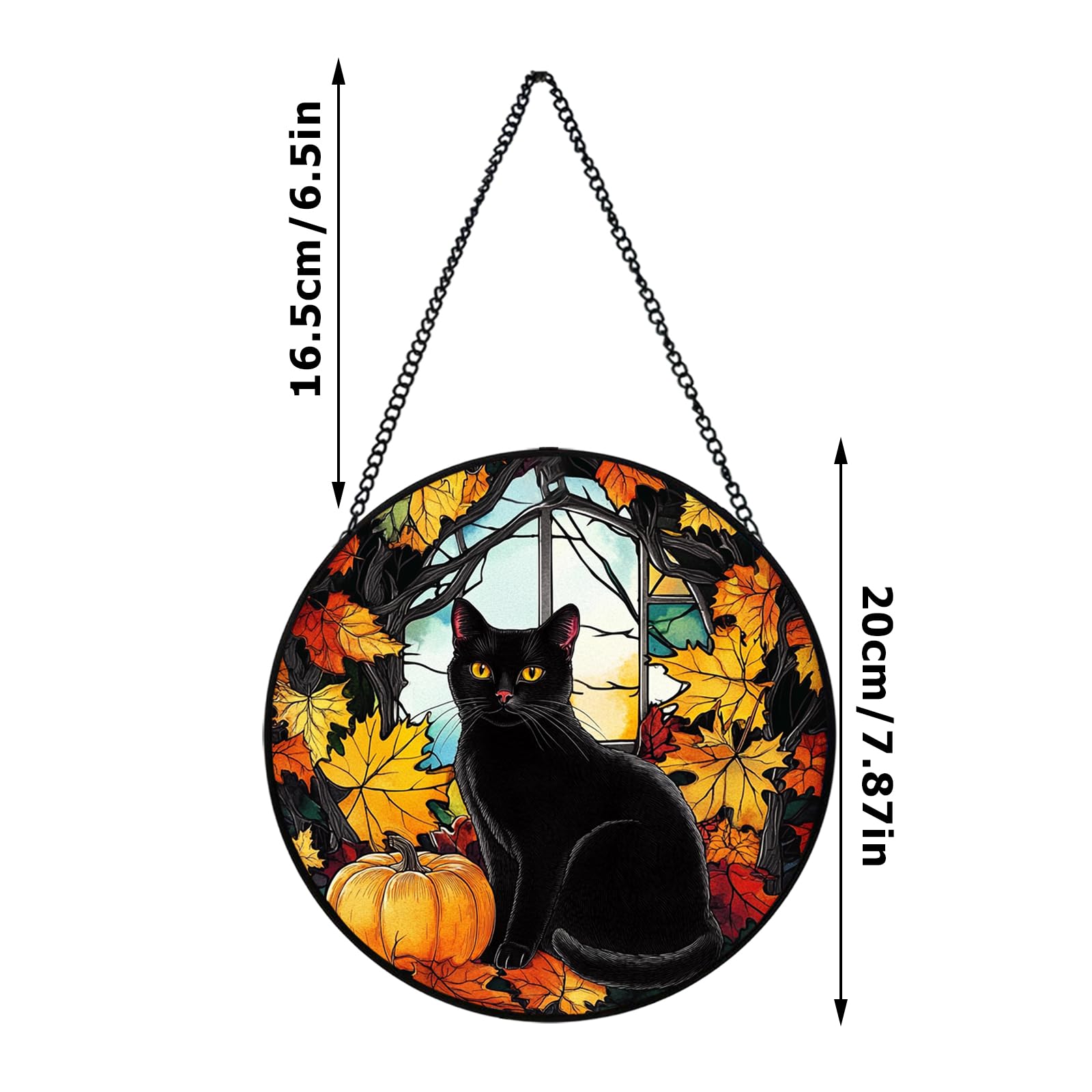 Xuoxeji Black Cat Stained Glass Suncatchers for Windows, 20cm/7.87in Black Cat Sun Catchers, Black Cat Themed Gifts for Women