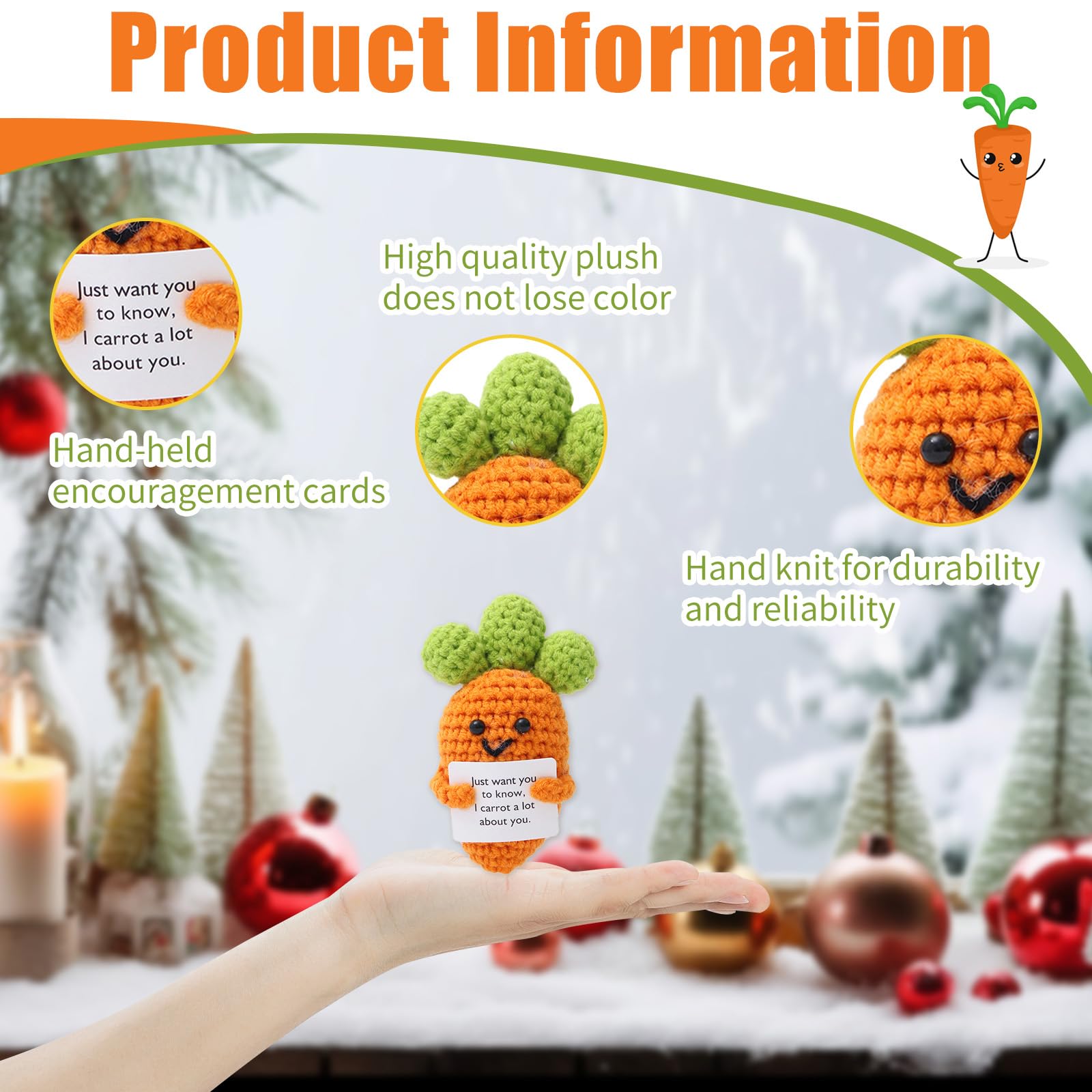 - Powerful Spiritual Comfort: Let’s face it, we all have challenges and difficulties. This positivity gifts for women is your little comfort. This crochet Carrot is like a friend, it brings great encouragement wherever you go