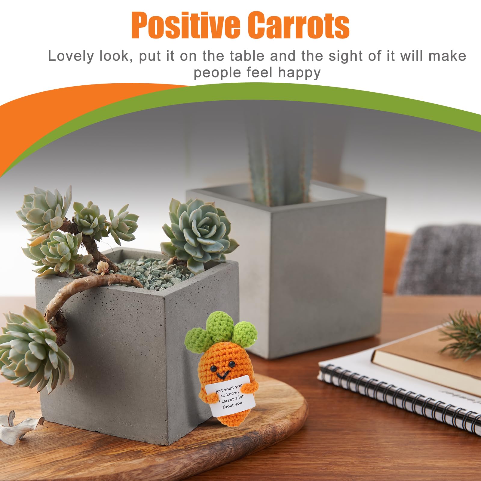 - Bring encouragement: The cards of our positive crochet are printed with inspiring words. When you see them after a hard day at work, you will feel encouraged and happy. With the cute Carrot potted doll, experience the joy and comfort brought by a cute and fun companion. The mini crochet Carrot’s positive pinchable body and uplifting presence bring you emotional support, improve your mood, and are the perfect companion for your daily life