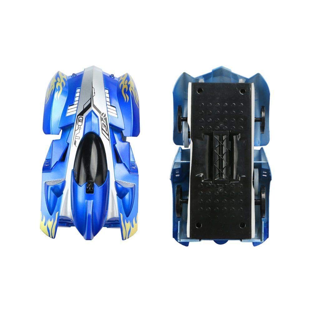 Yangers Radio Controlled Wall Climbing Car, 4 Channel Defy Gravity Wall Climber with LED Lights, USB Rechargeable Electric Toy for Kids (Blue)