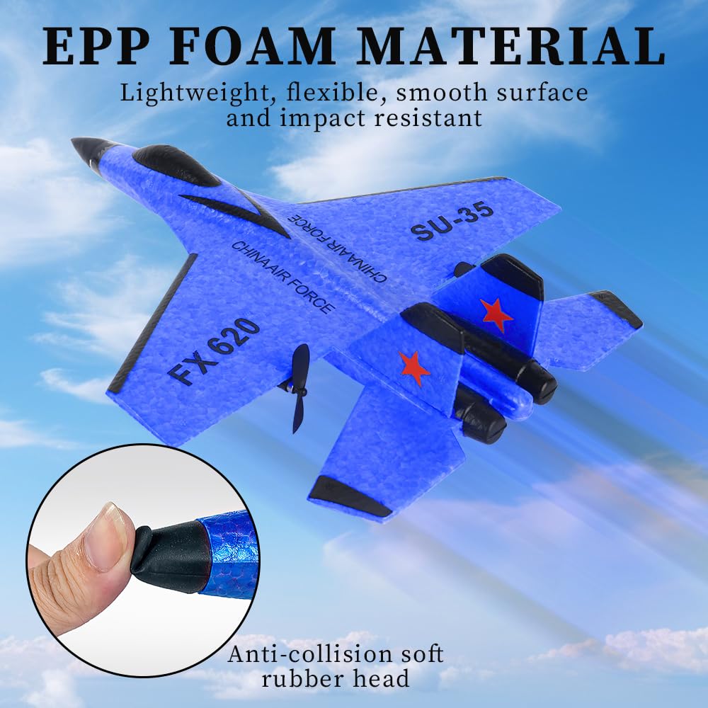- High QualityRemote control plane with super tough EPP special foam material, has a sturdy construction, the aircraft is flexible and resistant to fall crashes, suitable for beginners to practice their flying skills. The head is equipped with silicone protective cover to prevent impact, you do not have to worry falling or collision.