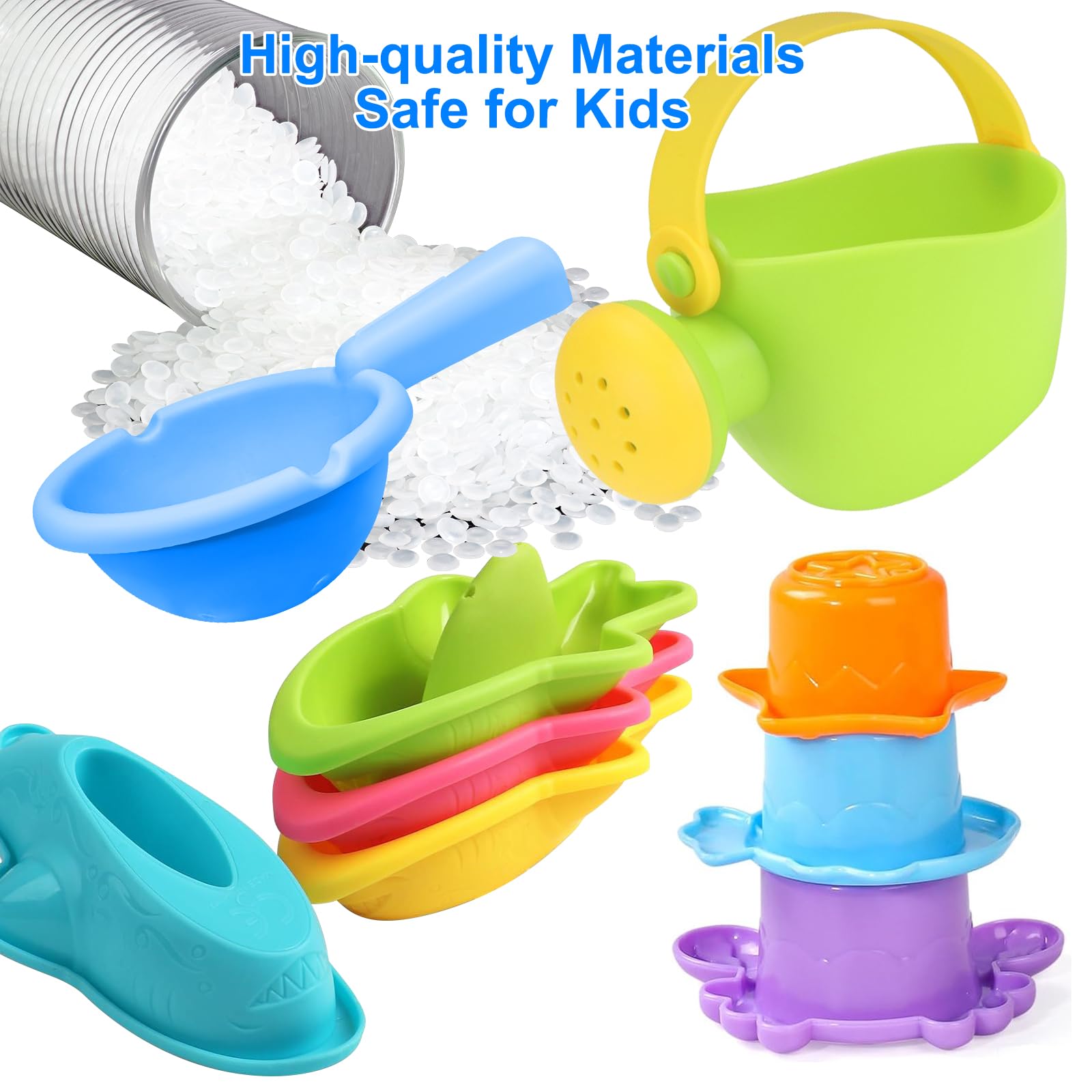- Soft and Durable Bath Toys – Our bath toys are carefully crafted with high-quality plastic, with soft edges and lightweight design that are perfect for little hands to hold, while also being smooth and durable.