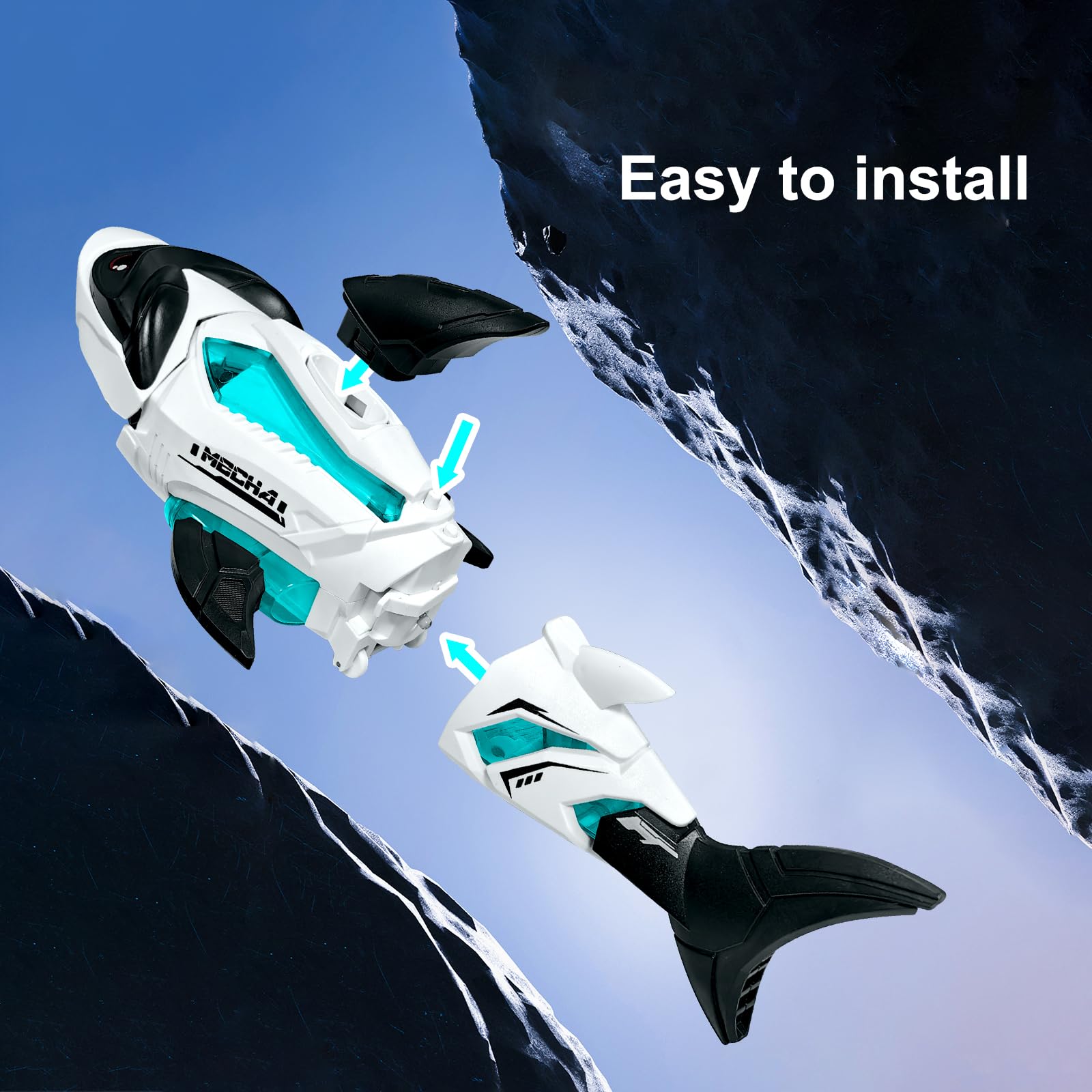 - Easy to Install: Before playing with the shark toy, you only need to install the shark’s dorsal fin and tail, which is very simple. To start, you only need to install 3xAA batteries (not included). After playing, remember to put away the fins and tail to prevent loss. The toy is made of high-quality ABS material, non-toxic and smooth surface, to protect your child’s safety.