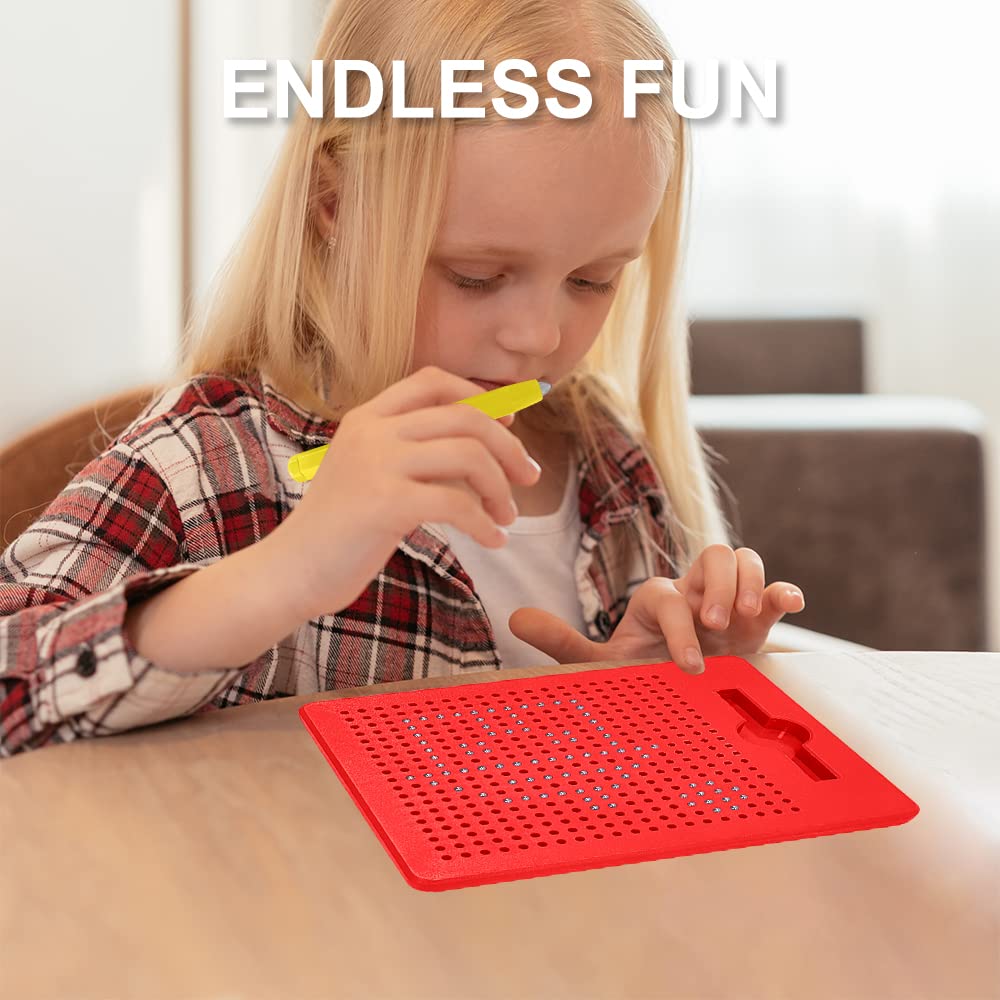 YATOSEEN Magnetic Drawing Board for Children, Drawing Board with Magnetic Balls and Pen, Kids Toy Drawing Gifts for Children Aged 3+, 215x175x12mm(Small, Red)