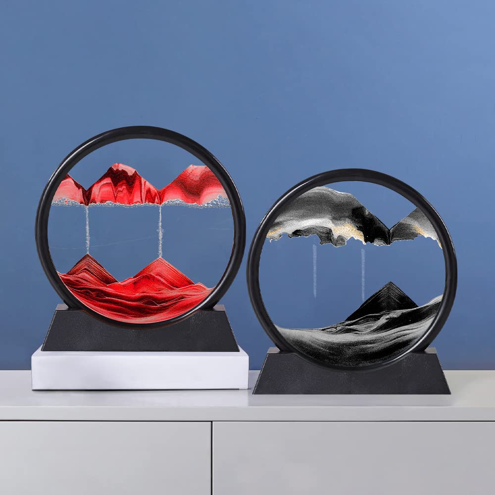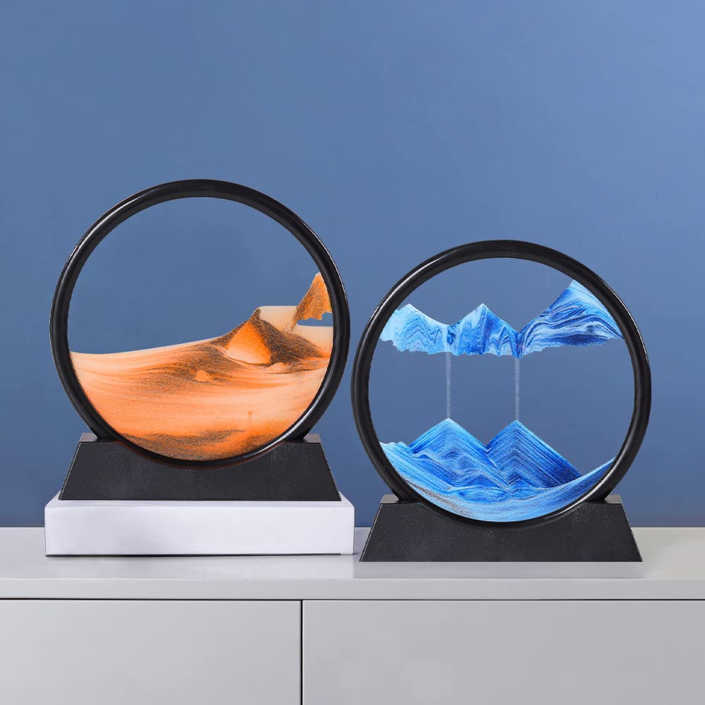 - High Quality- The round glass is transparent and clear, with a wonderful picture texture that fully reveals the beauty of quicksand. The carefully selected sand is matched with bright colours and layers, flowing out in excellent 3D effect patterns, very lively and interesting. Exquisite thick frame and base with elegant and stylish colours.