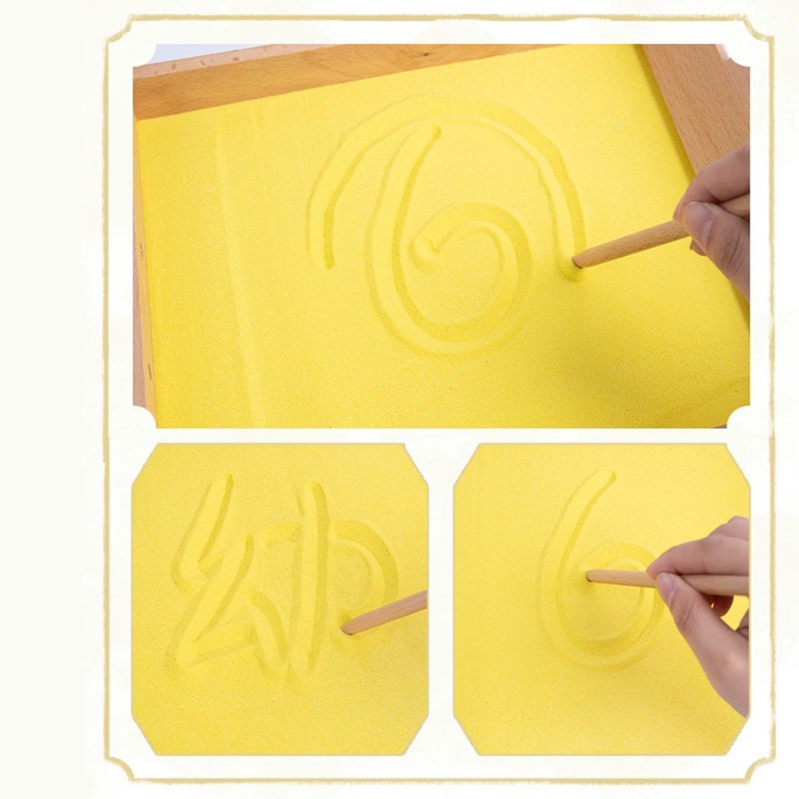 Our sand writing trays is handcrafted from high quality wood with a great feel and smoothness, and the edges are crafted and sanded to be round and smooth without hurting your hands, which is very friendly to children’s cute little hands.