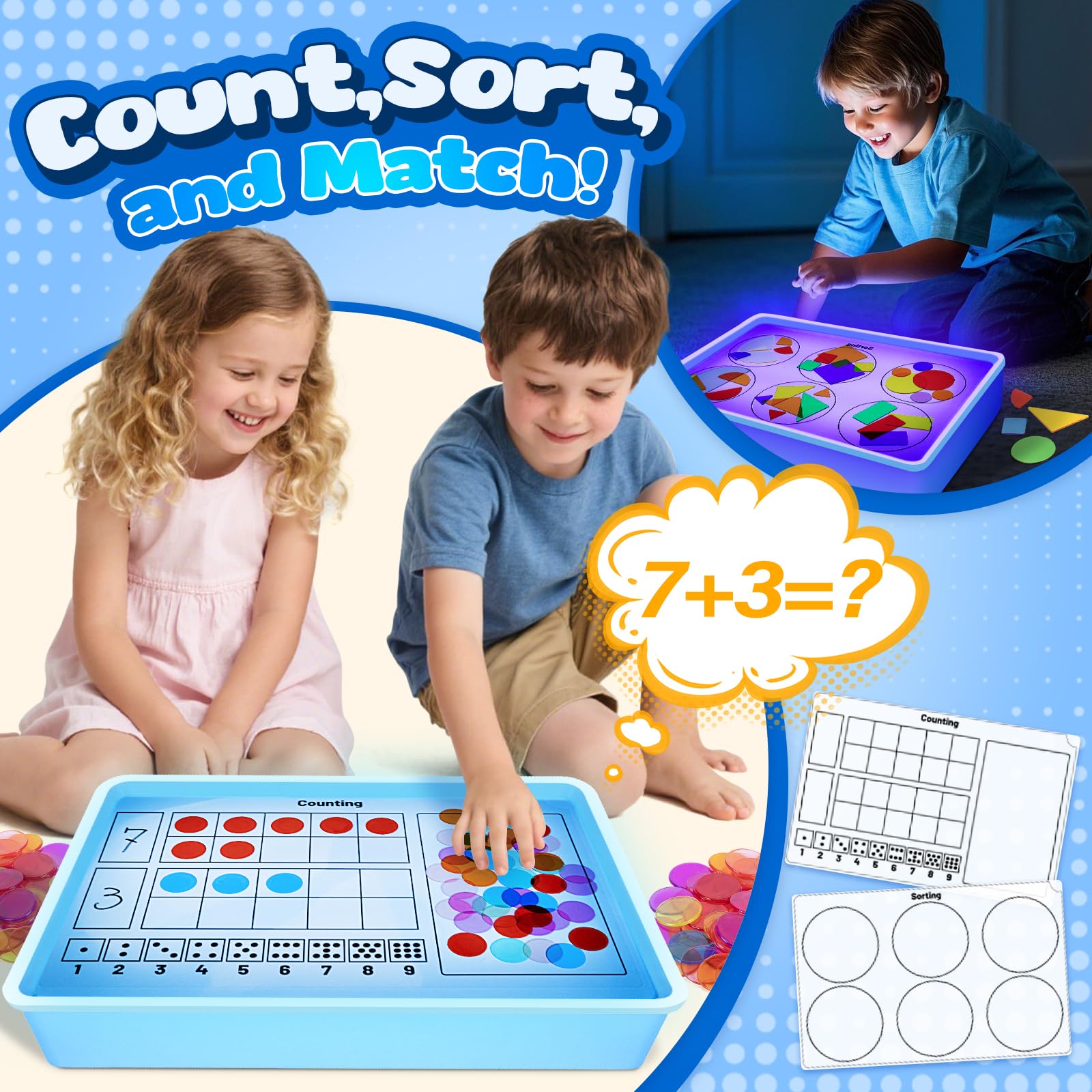 - MULTIPLE SCENES USE – Explore various scenes with our sensory light table! Featuring three power supply modes: portable power bank, phone charger, & computer USB port, it includes storage bags & box for easy transportation. Ideal for your classroom, daycare, preschool, home, playroom, montessori, and more.