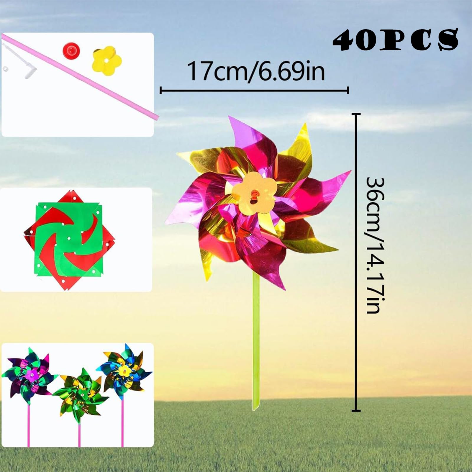 - Sufficient quantity: You will receive 40 pieces foil windmills; The windmill pinwheel is not assembled in the package, you need to install it by yourself; It is a chance to practice your handwork ability.