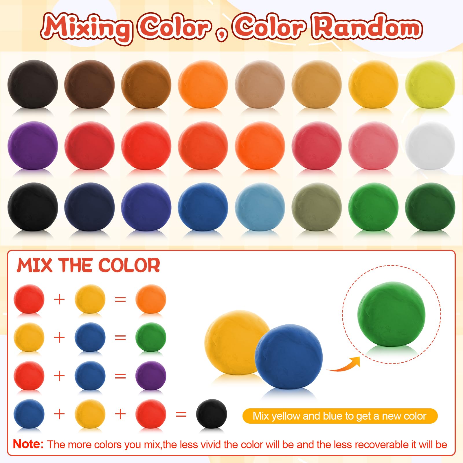- MULTIPLE COLOURS TO CHOOSE FROM: This Dough playset includes 24 reusable 50g jars (1.76 oz) of soft, non-toxic modeling clay in bold, bright hues, perfect for imaginative play for 3-year-old boys and girls who love modelling clay.When to clean, allow to dry, then scrape or vacuum. Molded results vary depending on childs age and level of skill.