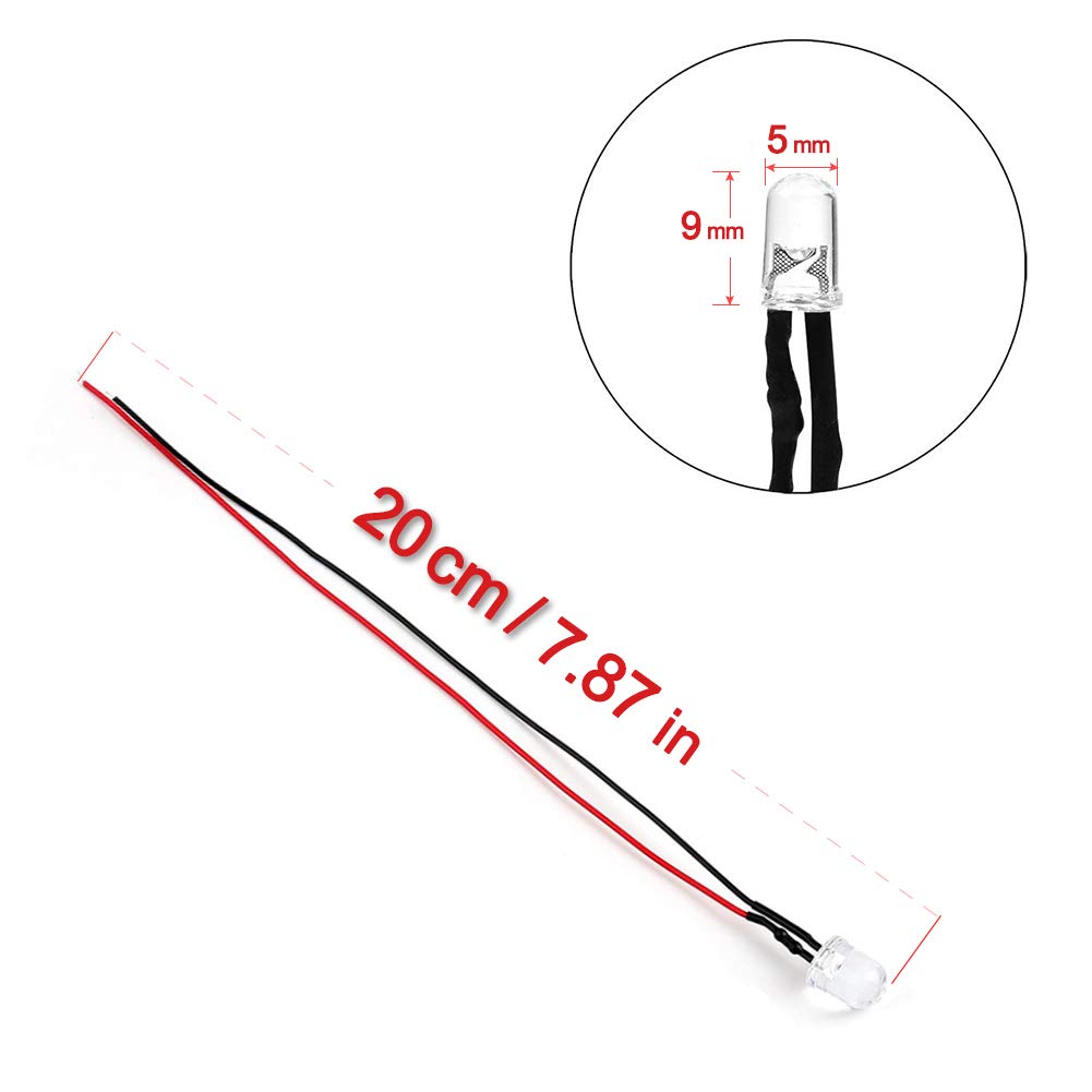 - Product Features: Prewired LED for DC 12V (Preloaded 1/4w Metal Film Resistor) – 20cm Wire Lead (Pure Copper & Tin-Coat at the end)