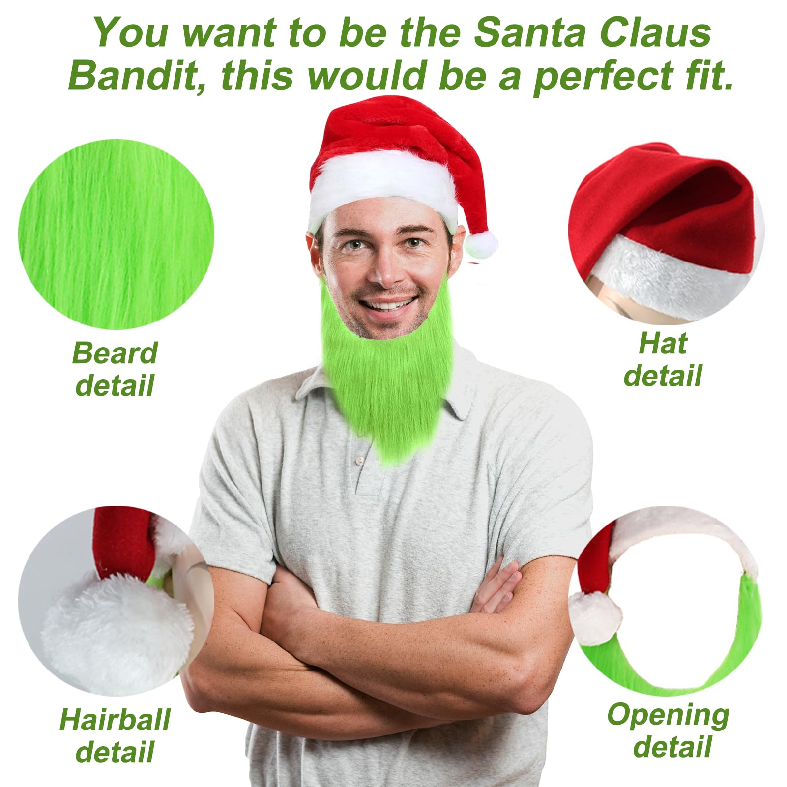 - Green Monster Costume Set: The YONEEKSS Green Monster Costume Accessories include a Santa hat, a green beard, and a pair of furry gloves, providing everything you need for a standout Grinch outfit at any festive event.
