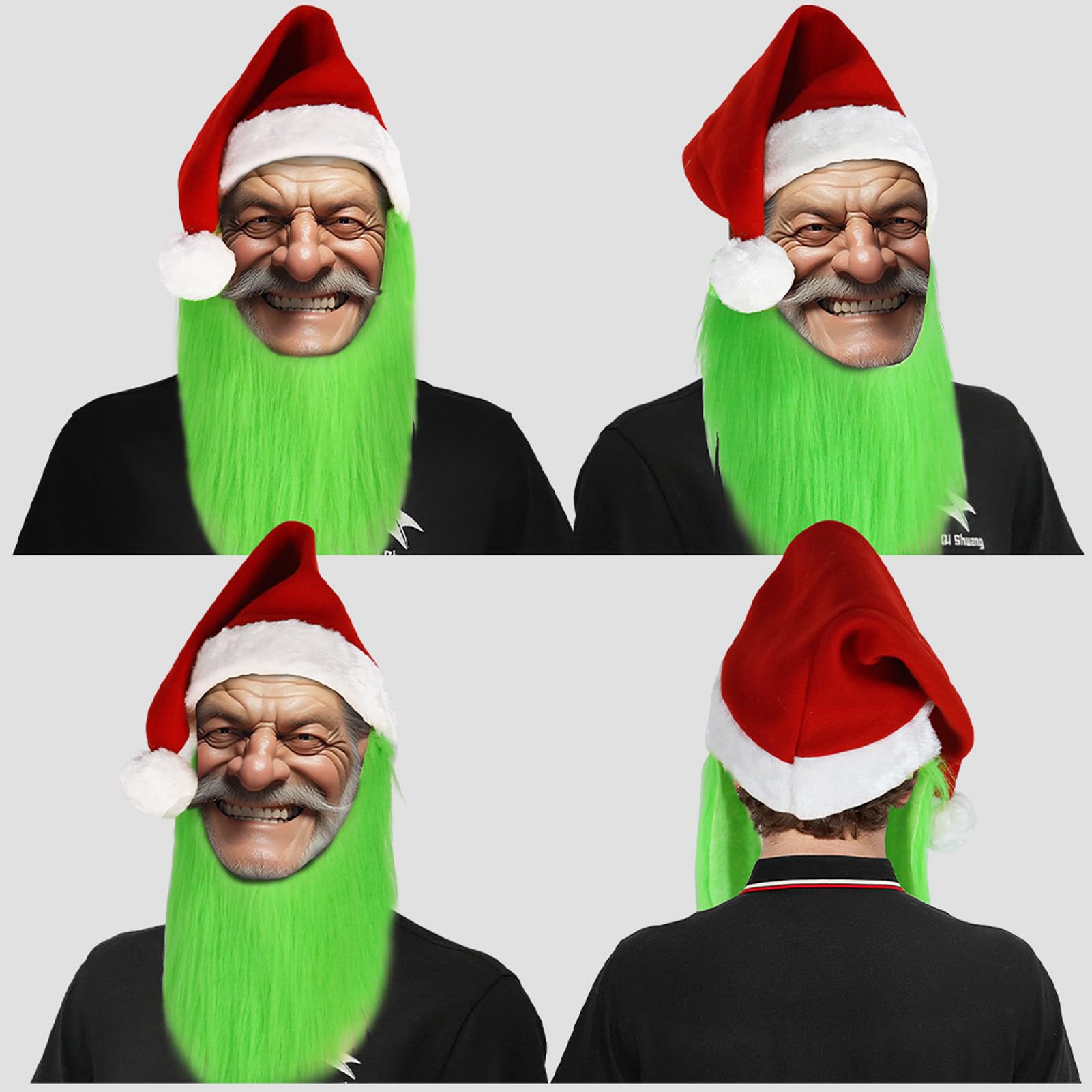 This set includes a Santa hat, a green beard, and a pair of furry gloves, making it an ideal choice for Halloween and Christmas cosplay parties.