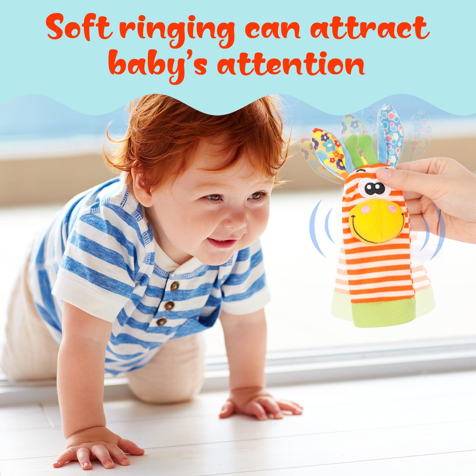 Rattle socks can keep baby’s feet warm and bring more fun to baby’s feet movement!