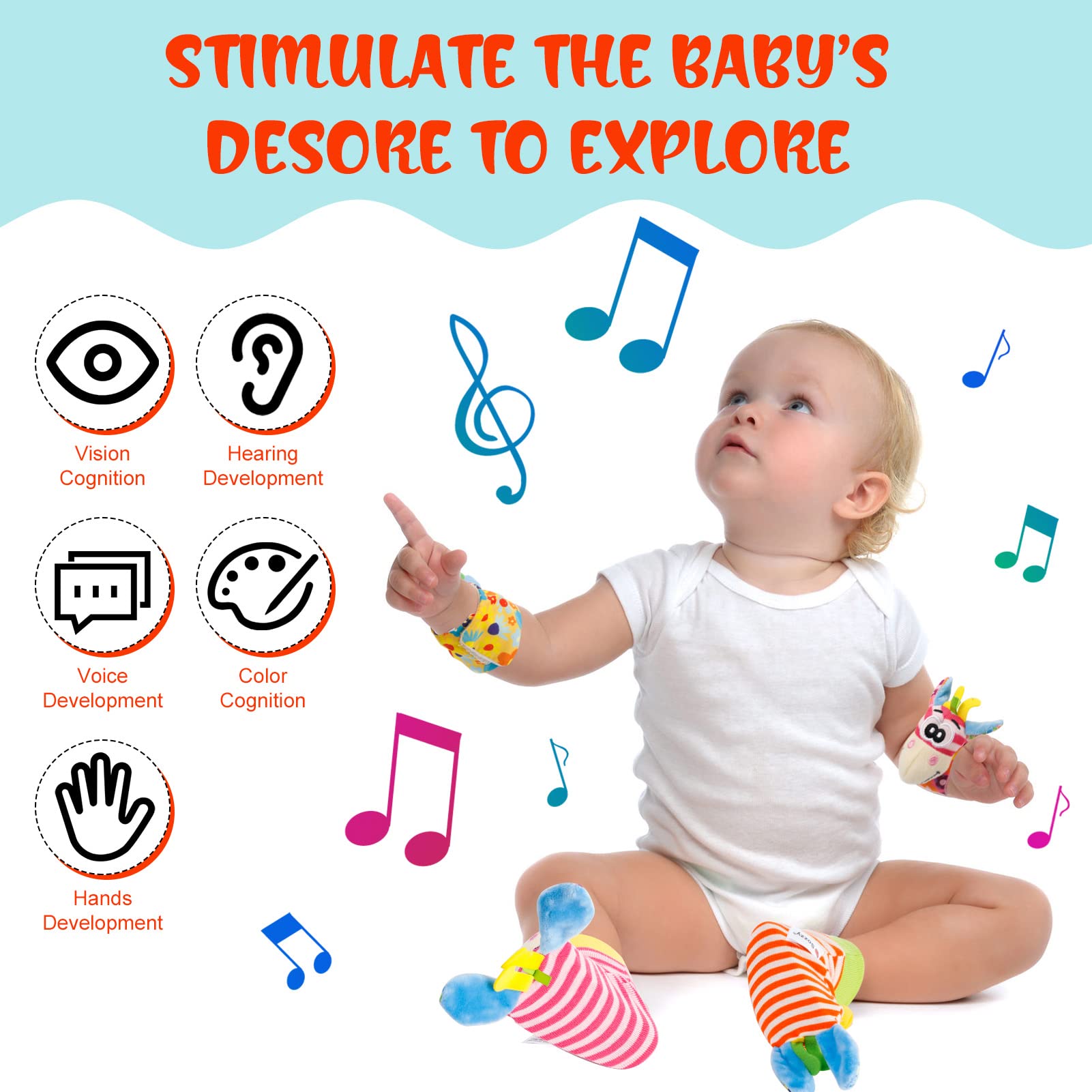 Babies like to watch and play the fingers, it鈥檚 fun for the baby to play if he/she wearing a Rattle on hand.
