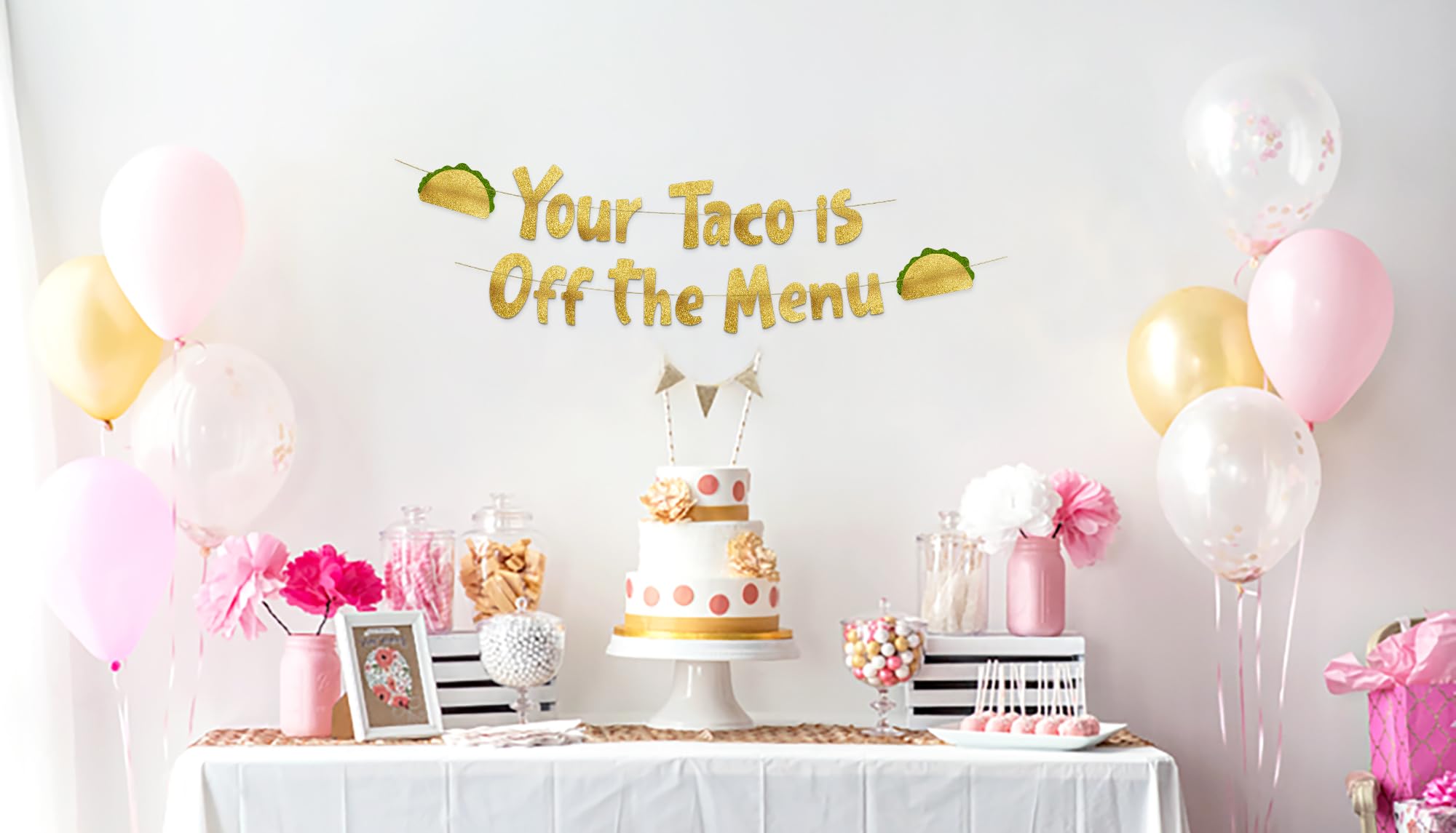 Your Taco Is Off The Menu Gold Glitter Banner – Funny Hen Party and Bachelorette Party Decorations, Favors and Supplies
