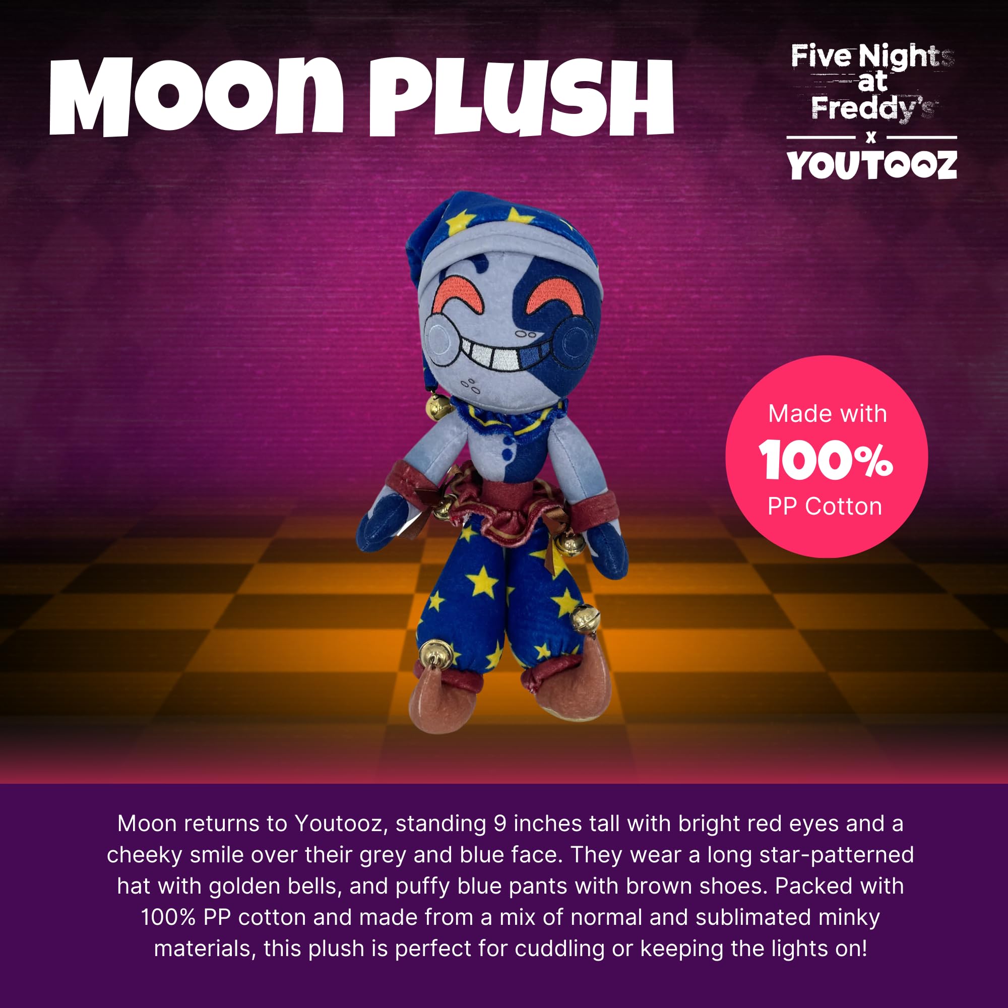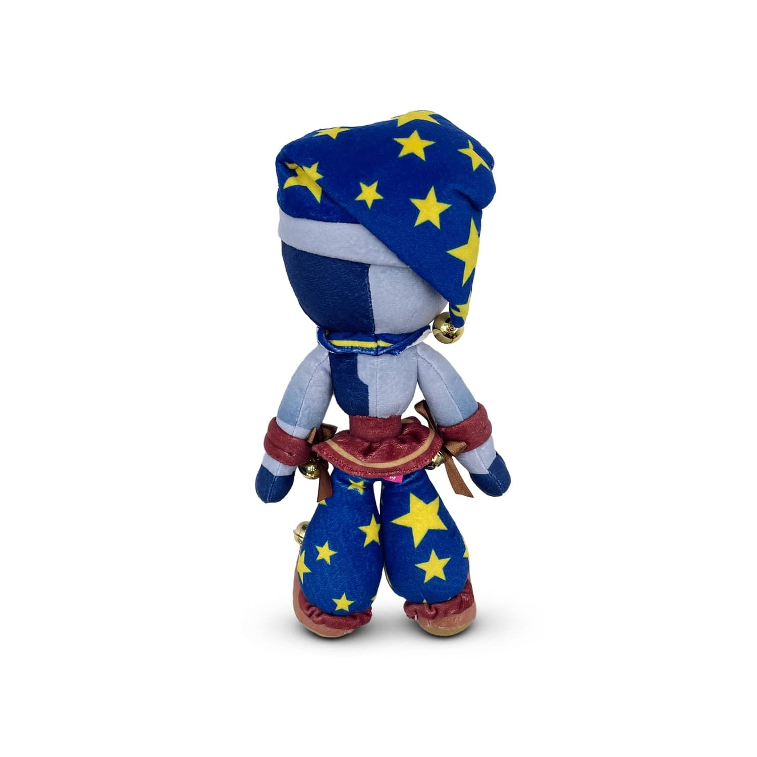 “It’s past your bedtime, you must be punished!” Moon makes their returns to Youtooz to make sure you’re obeying the rules! Standing at 9 inches tall with bright red eyes and a cheeky curling smile creeping up over a two tone grey and blue face. Their long star patterned hat dangles down to the side and ends in a golden bell that matches the two that are attached to their wrists, which lay out by their sides. With a frilled blue and yellow neck piece and ruffled brown waist, their puffy blue pants expand at the end and are finished with curling brown shoes.