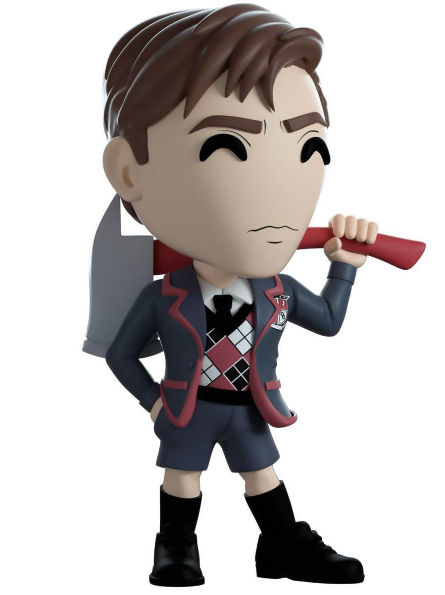 - Youtooz The Umbrella Academy Number Five Vinyl Figure: Standing at 4.6 inches tall with a red-handled fire axe swung over his shoulder casually and one hand resting in the pocket of his shorts, a stern look crosses his face with thin pursed lips as his short brown hair is swept over to the side with its fringe curling down onto his forehead.