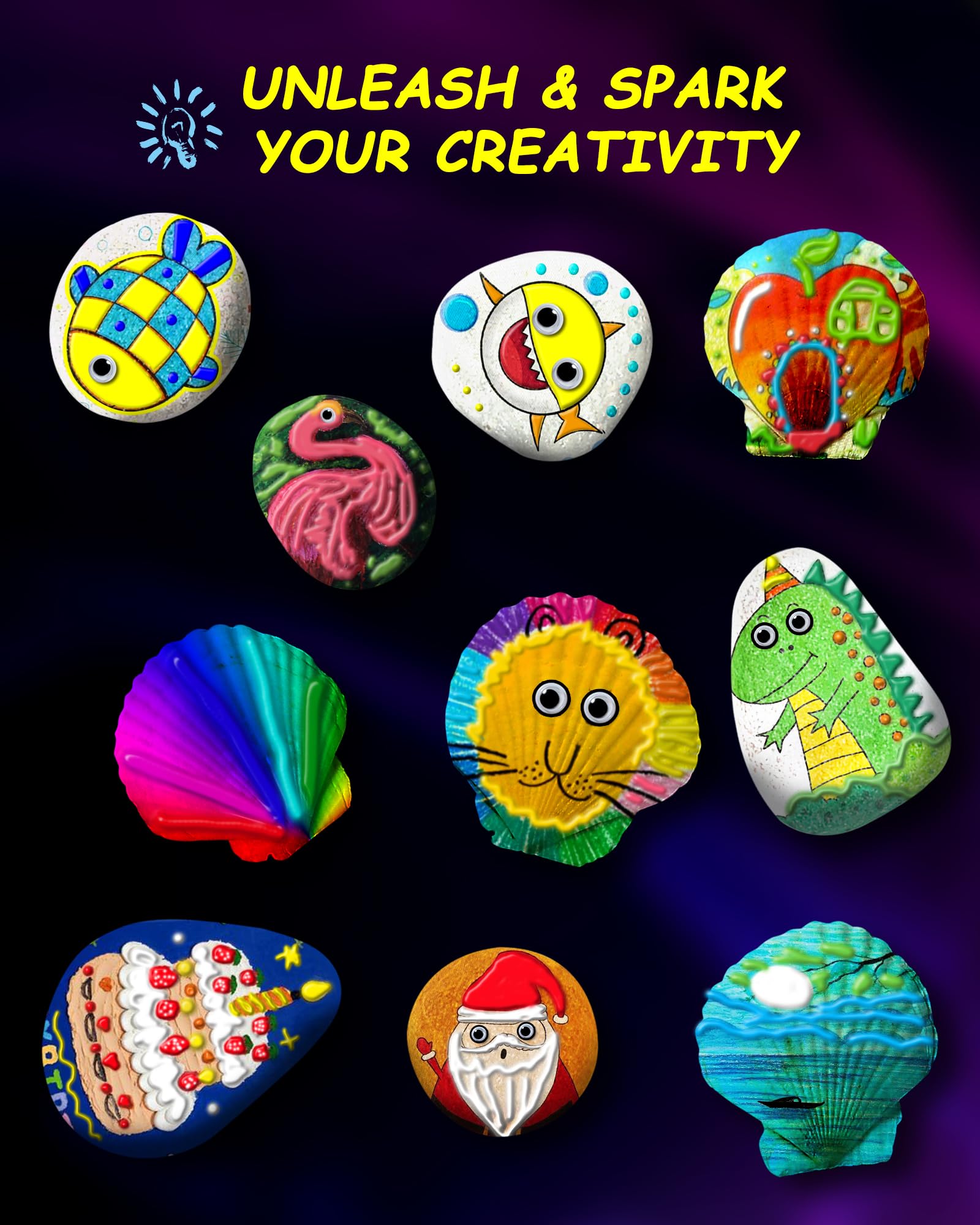 - Fun and Educational Gifts for All AgesThis rock & shell painting kit provides fun and entertainment for your kids! It fascinates kids when they take it out of the box and is a perfect STEM project. It is also perfect for personalized gifts, school classroom art projects, party gifts, gift exchanges, family craft activities, Christmas stocking stuffing, Easter, Halloween, birthdays and more!