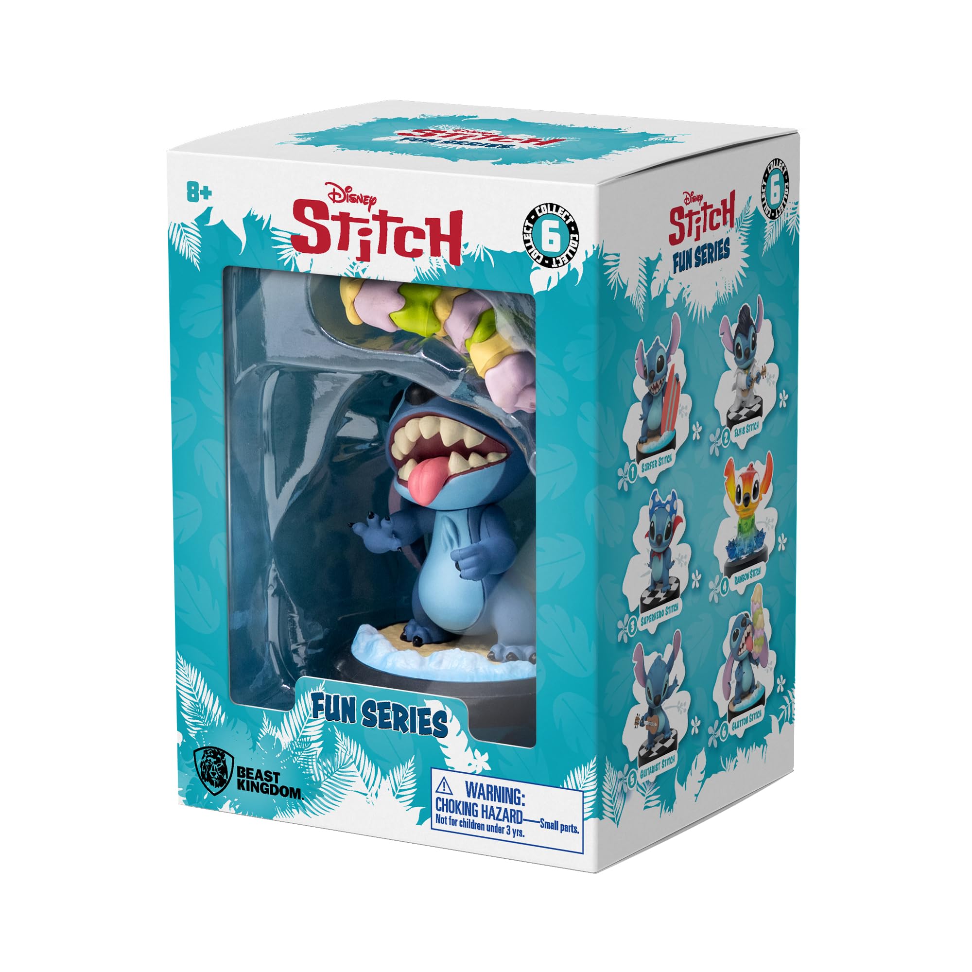 - COLLECT ALL 6 STITCH STYLES: Recreate hilarious scenes & build your own Stitch squad by collecting all 6 of our cute character figurines in the Fun Series; choose from Stitch in Mermaid, Superhero, Elvis, Surfer, Glutton or Guitarist mode