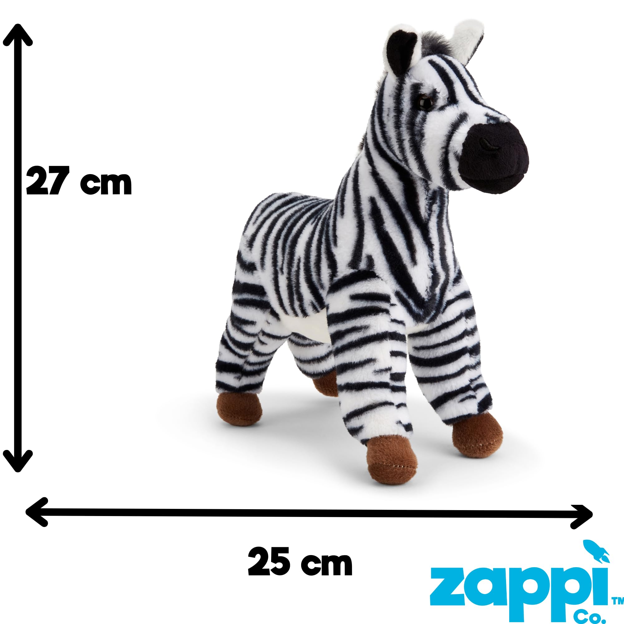 - Gallop into black-and-white brilliance with Zoe, the striking Zebra plush! This 25cm savanna beauty is crafted from eco-friendly materials and eager to add some stripes to your child’s toy collection. Zoe’s bold pattern and soft texture make her both a stylish room accent and a lovable playmate.