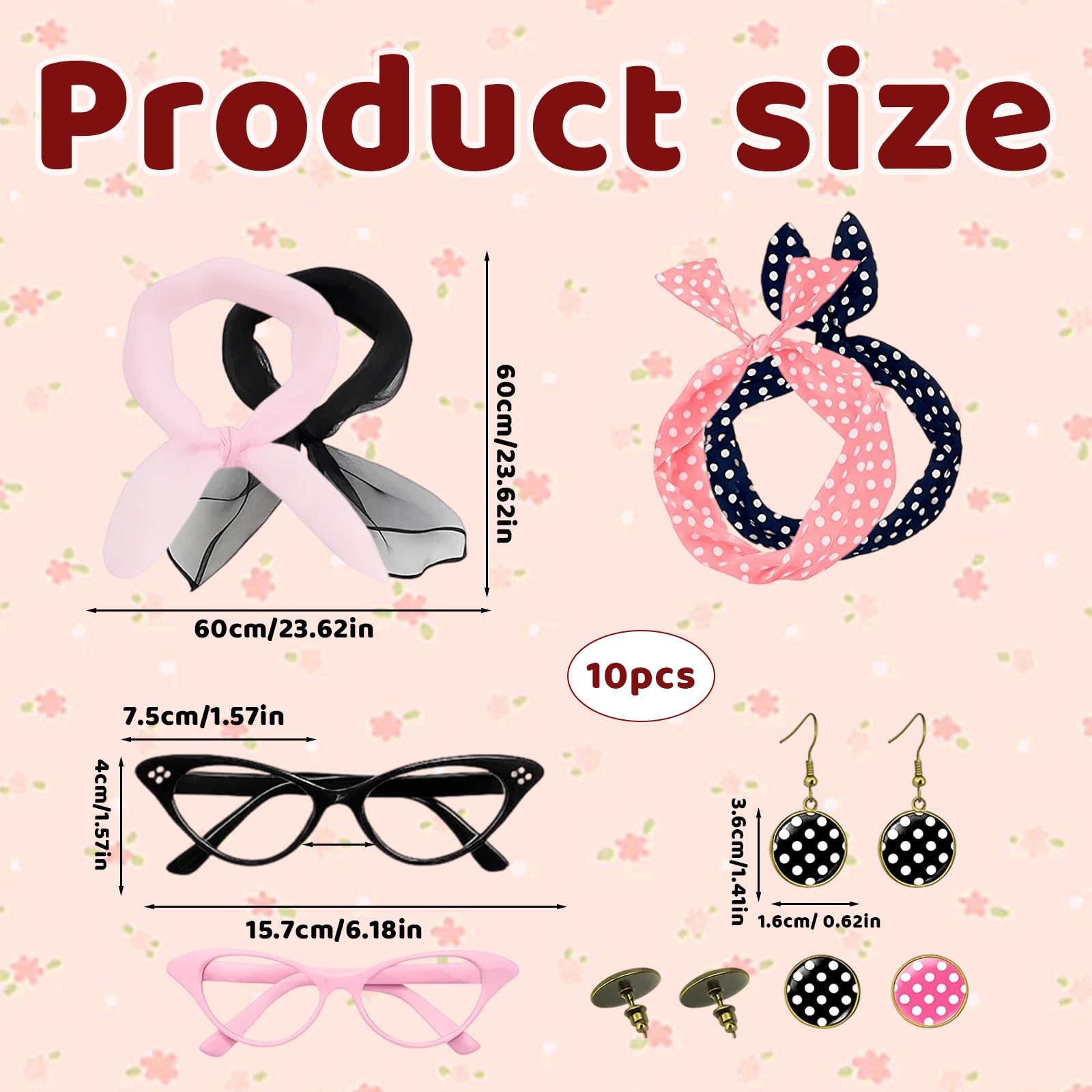 Easily pair these 50s accessories with your existing wardrobe or use them to complete a full retro costume; The set allows for multiple styling combinations, making it perfect for costume parties, cosplay, and themed events